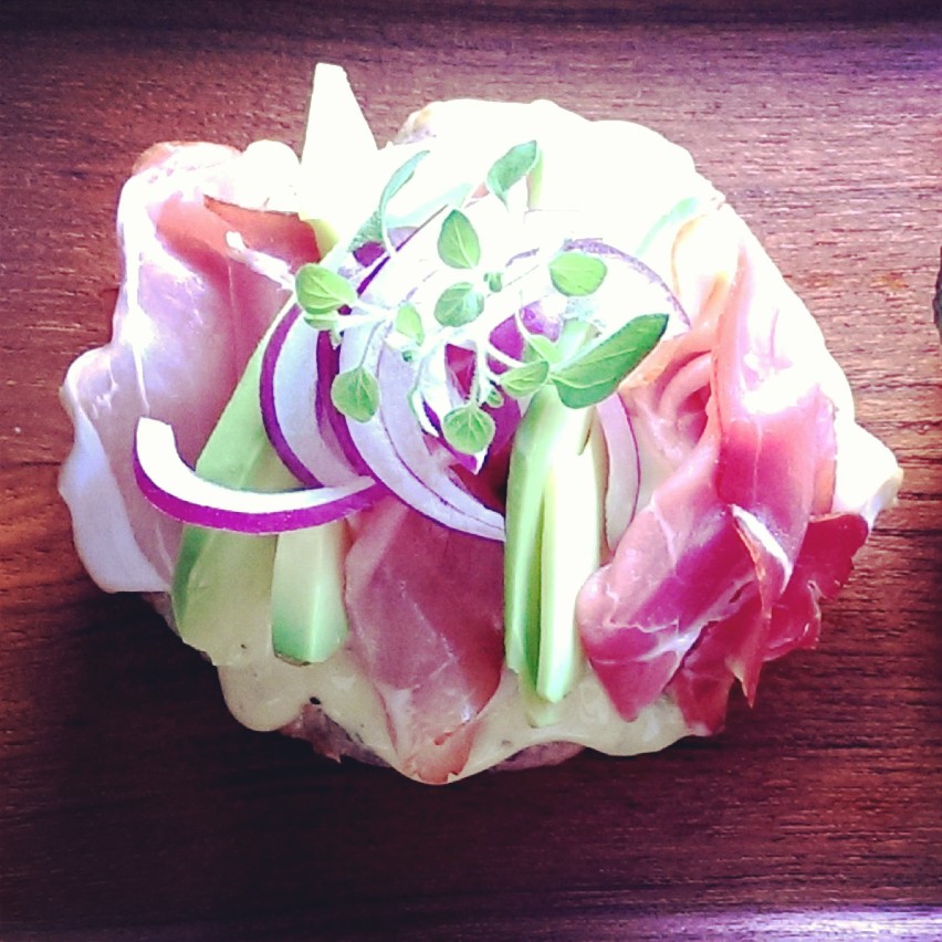 Spekeskinke, avokado, rødløk og hjemmelaget remulade som du lager SLIK.