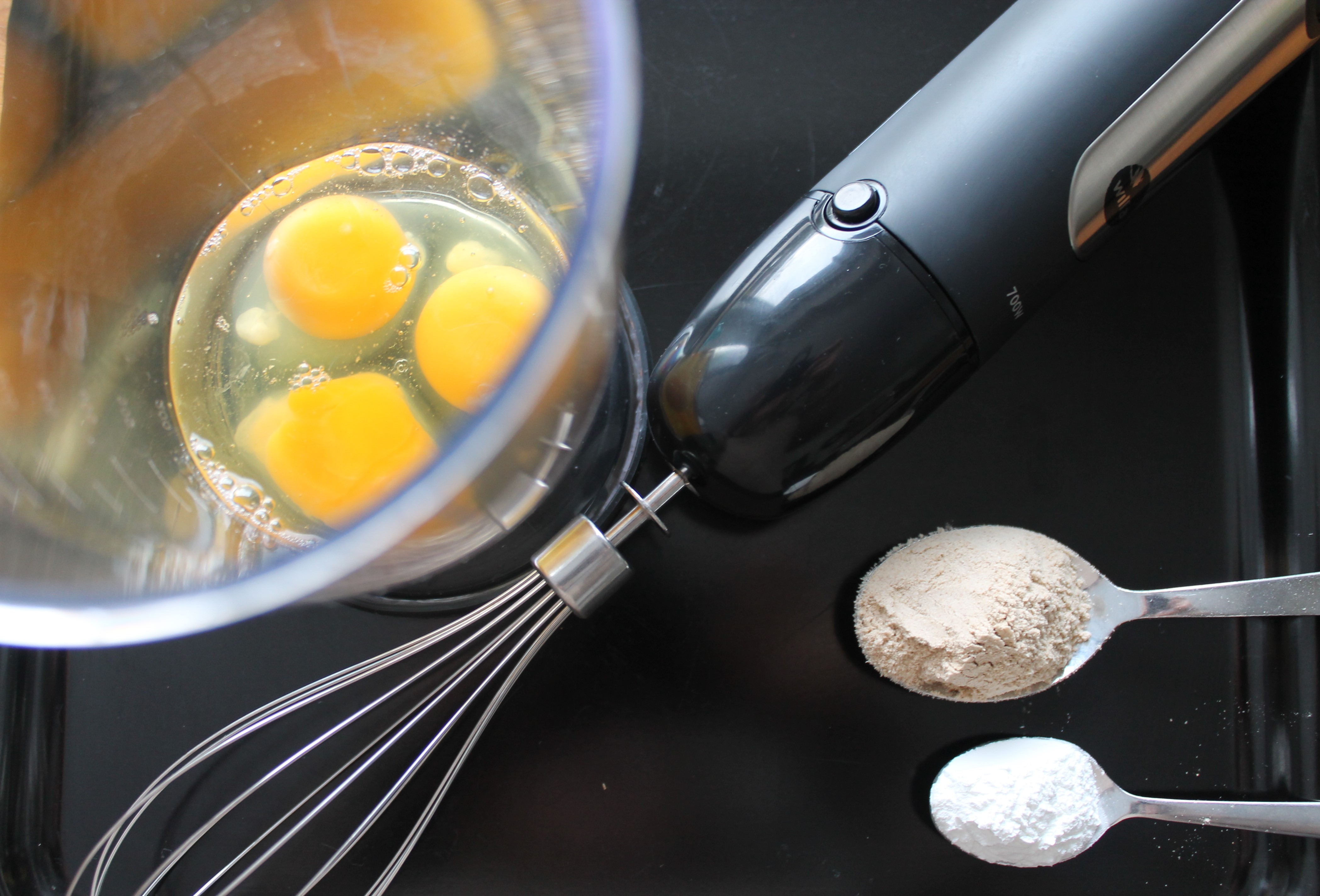 Pisk sammen eggene, bakepulver og fiberhusk.