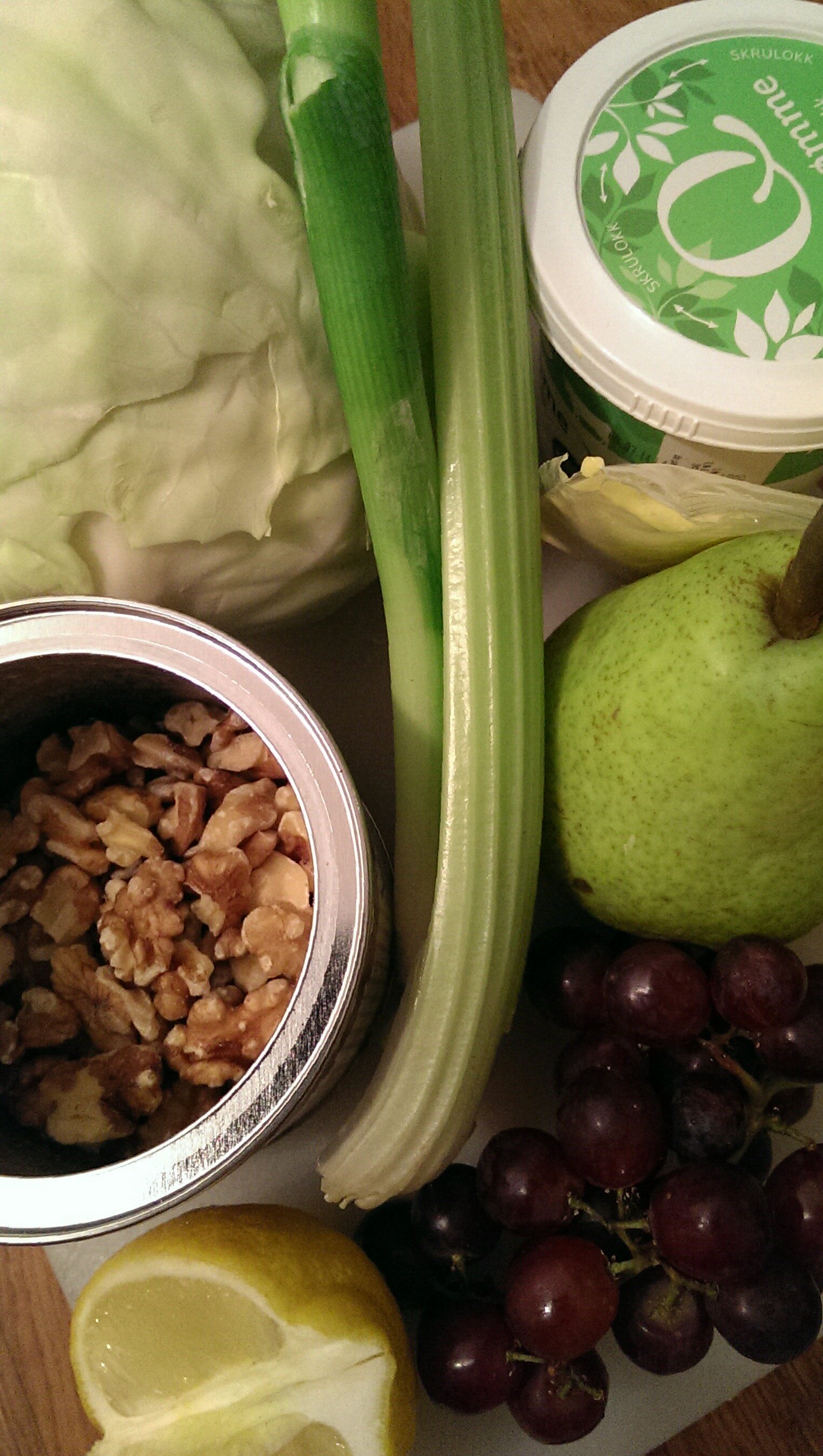 Dette er en vri på den tradisjonelle Waldorfsalaten som jeg synes gjør den friskere og «lettere» på smak uten for mye majones og fløte.  Salaten kan brukes som tilbehør til stort sett all slags kjøtt og passer perfekt til koldtbord.