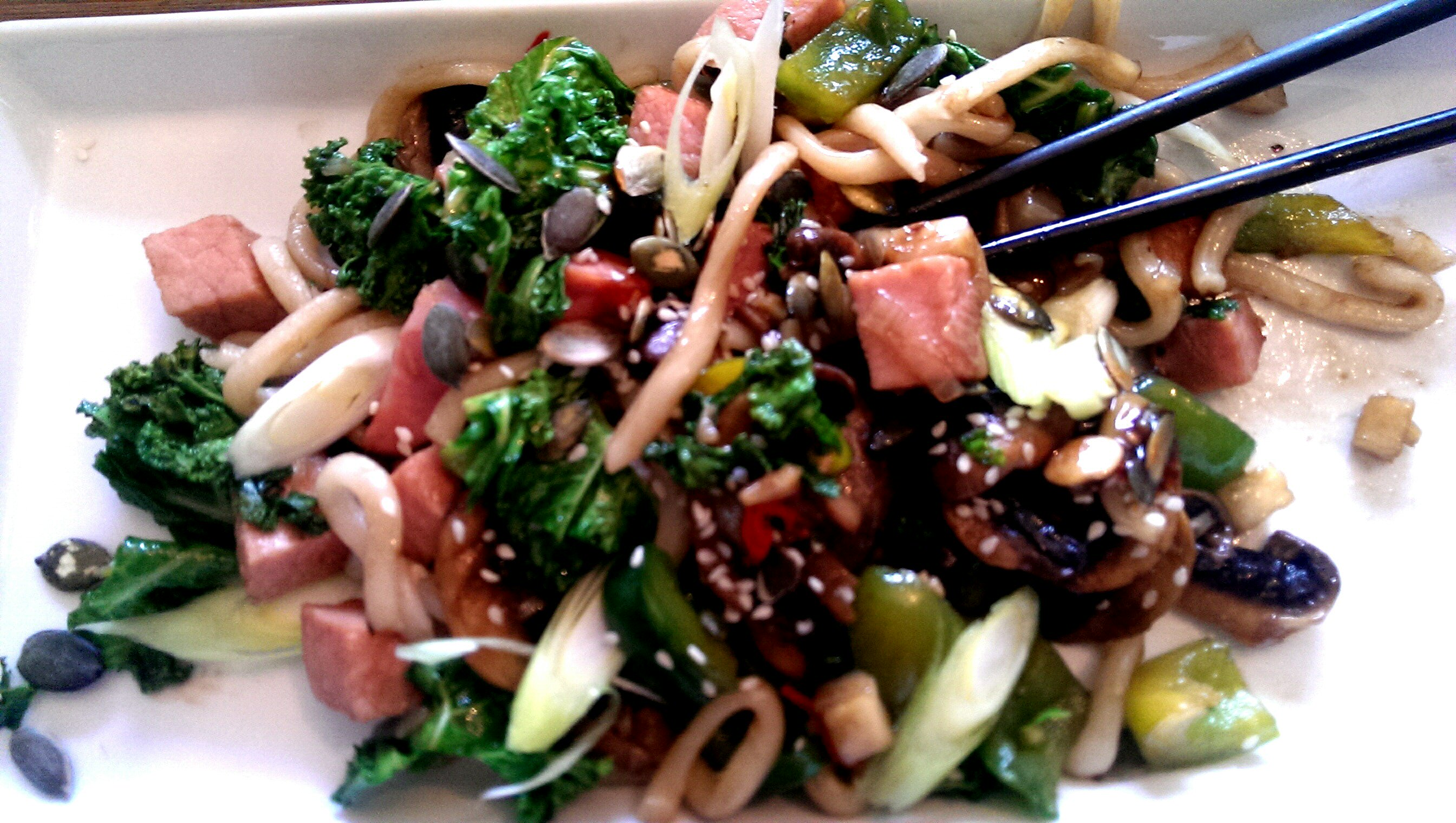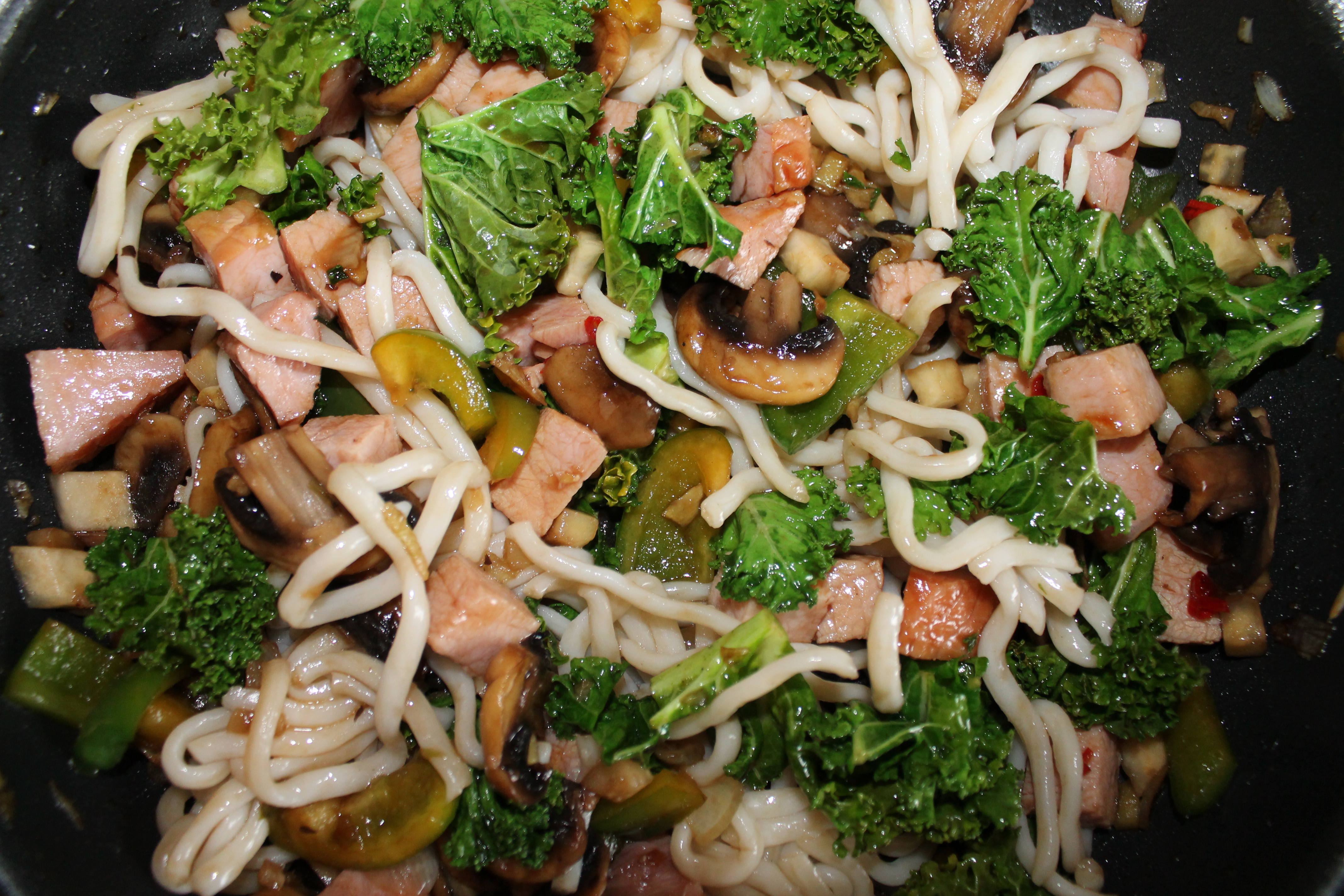 Jeg pleier å kjøpe med meg en kassler hver gang jeg er i Sverige. Kassler er lettrøkt svinekjøtt fra kotelett eller ribbedelen. Det er omtrent fritt for fett og kan tilberedes på utallige måter, både stekt og kokt. Jeg hadde ikke tenkt til å blogge denne «resteretten», men den ble så bra at den fortjener litt oppmerksomhet. Jeg valgte å lage en wok med mye smak av ingefær, chili, hvitløk, hele svarte pepper og kinesisk Oystersaus til wokingen. Jeg har bare fått helt dilla på å bruke hele pepper i matlagingen. Det er en så vanvittig deilig eksplosjon av smak når de tygges og blander seg med de andra smakene.