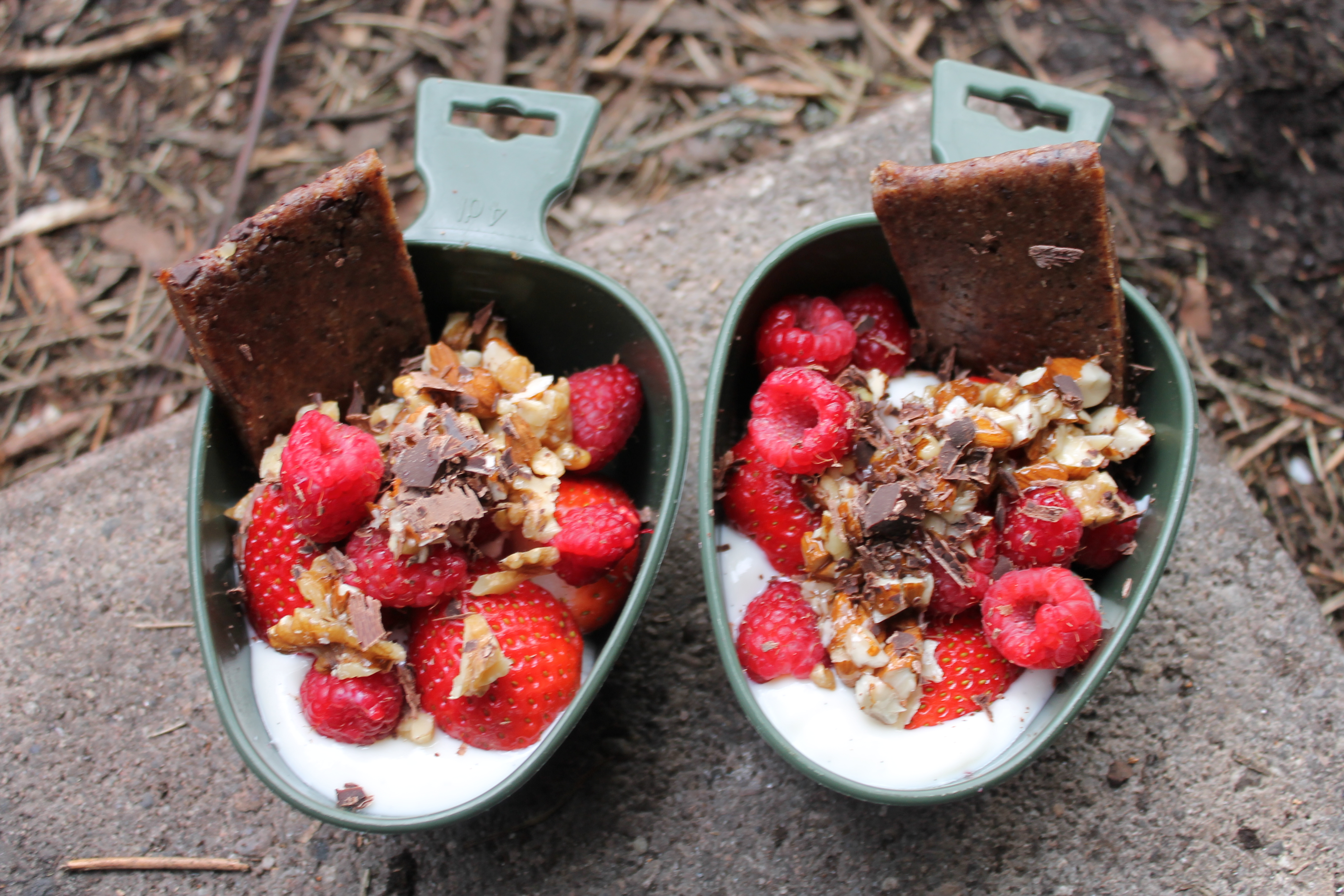 Vi hadde med energibarer på tur i dag og de ble nytt sammen med bær til dessert 🙂