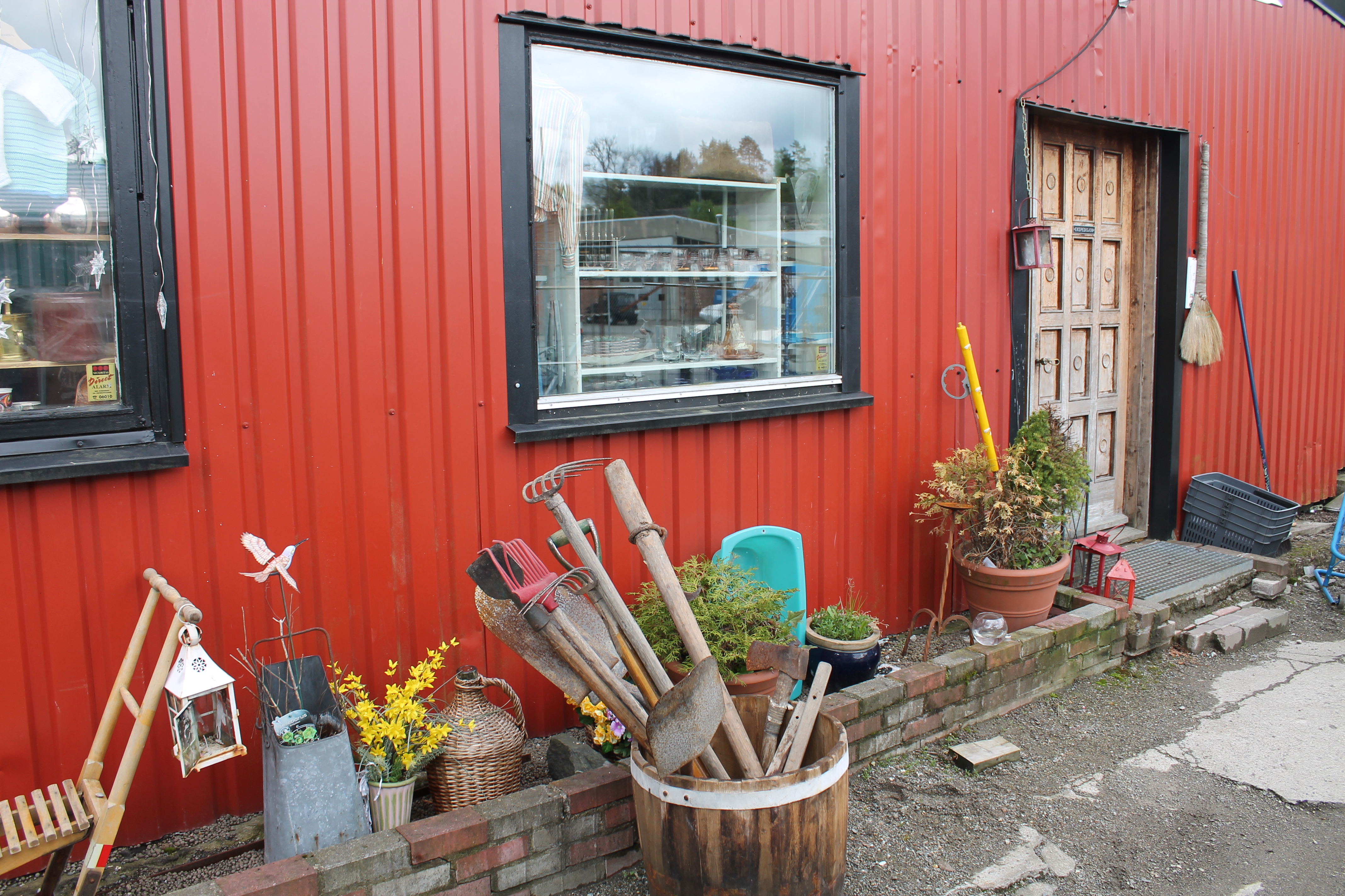 Ikke la deg stoppe av den litt industrielle fasaden på Kambo Brukt for på innsiden av denne døren er det service, hygge og vakre gjenstander. Sett av tid og kikk godt etter når du er der 🙂