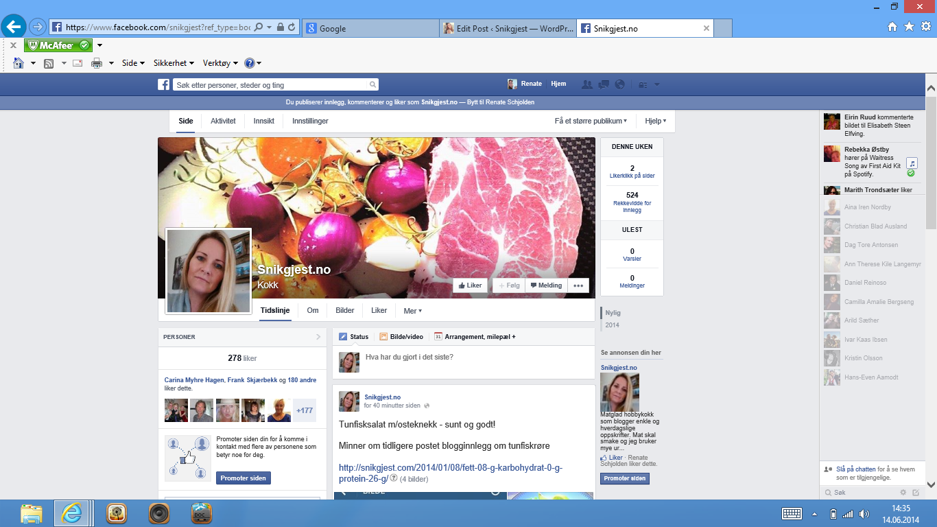 Jeg deler en del enkle middagstips, bilder, andres linker, matoppskrifter og blogginnlegg på facebook under LIKER siden Snikgjest.