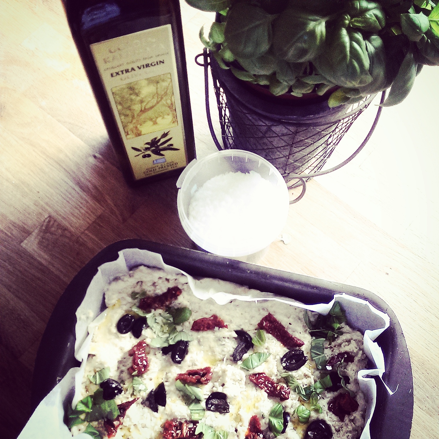 Ingen ting slår foccacia laget med hvetemel og gjær, men kan man ikke spise det er denne oppskriften et mye sunnere og tett oppi like godt alternativ. Kremost og kokosmelk gjør brødet ekstra saftig, mens soltørkede tomater, oliven, basilikum, salt og olivenolje tilfører deilige og friske smaker. Foccacian passet perfekt til spicy kjøttboller, gresk salat og tzatziki 🙂