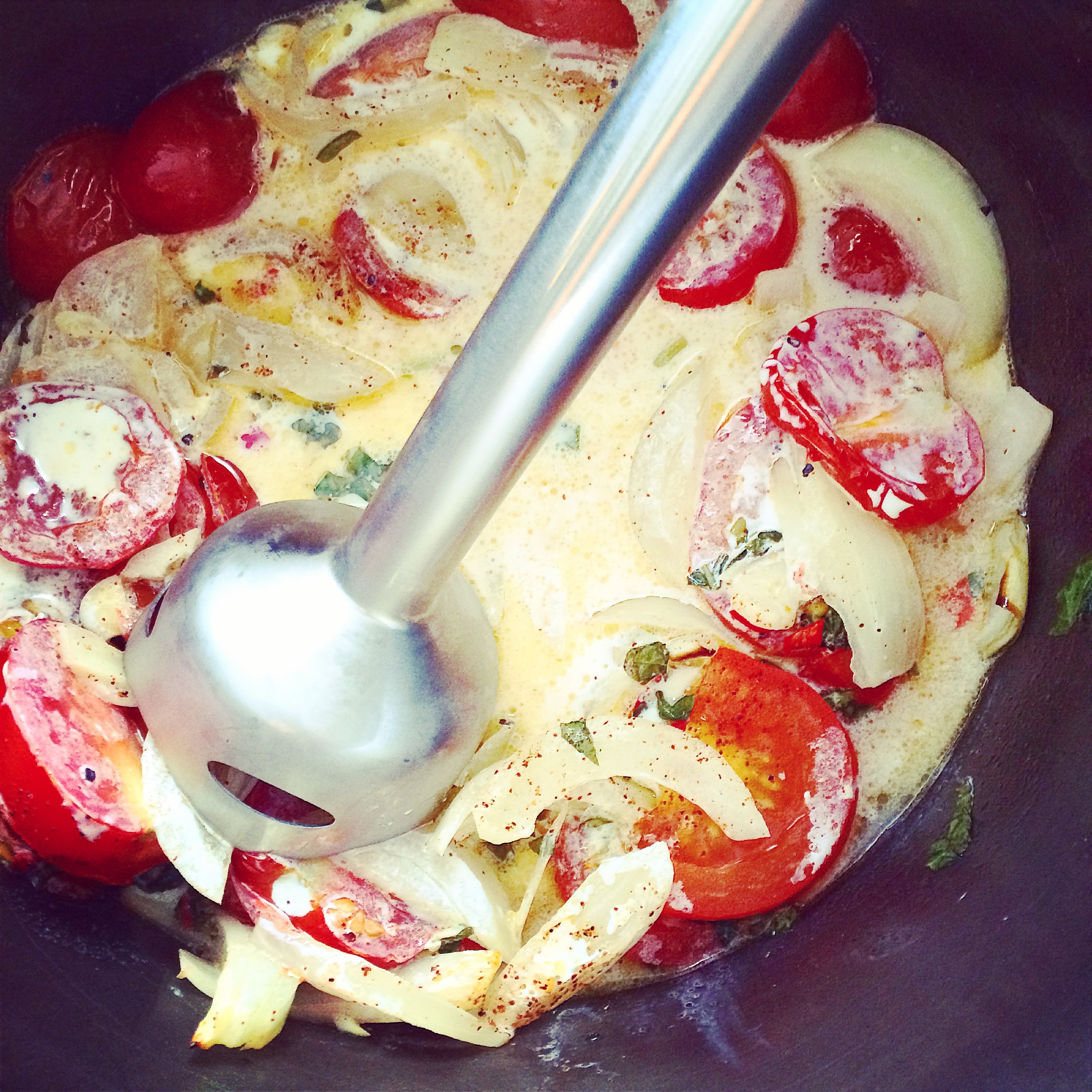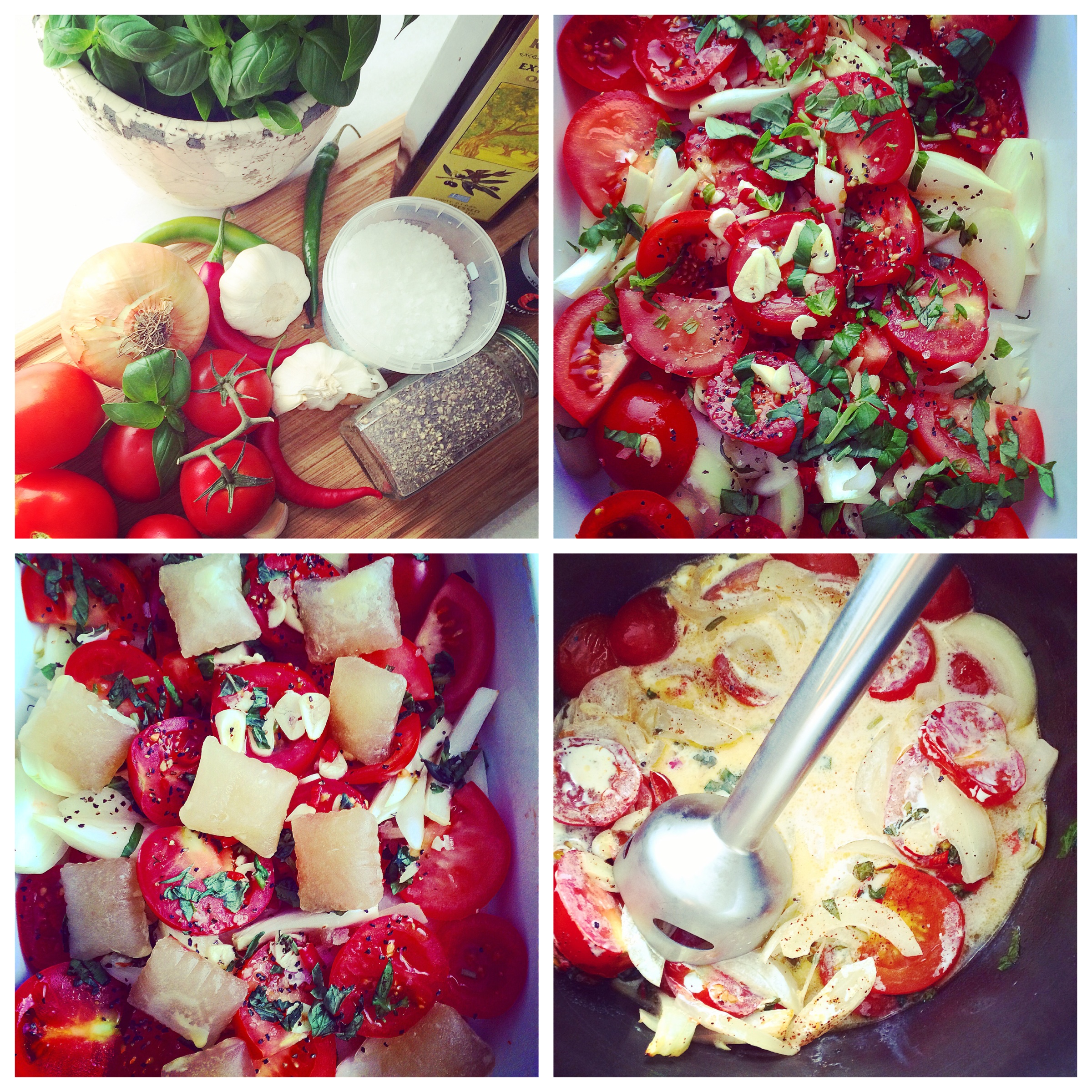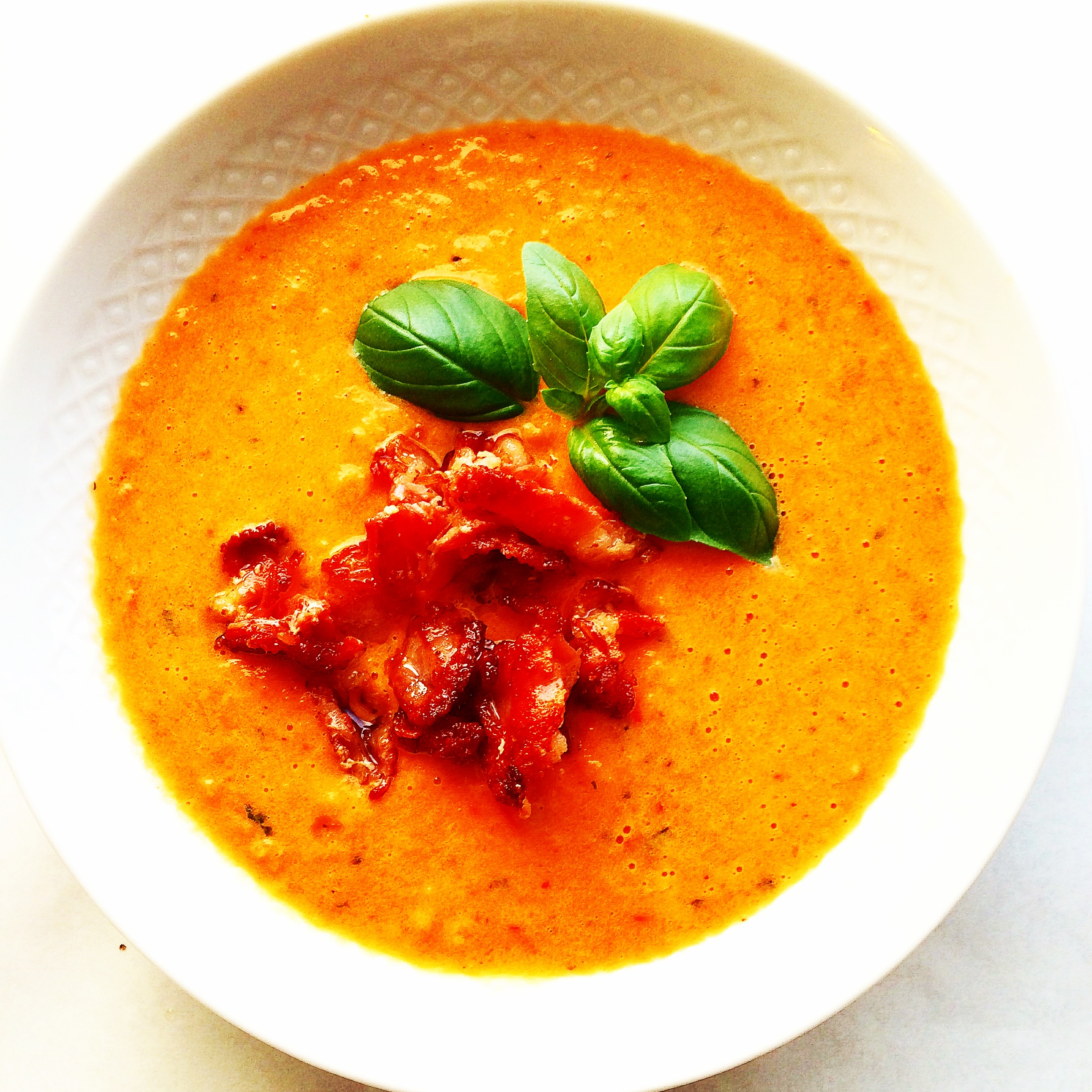 «Suppe i denne varmen?» tenker du kanskje, men jeg lover deg at en passe lun og kremet tomatsuppe med mye smak og litt styrke passer like godt uansett temperatur. Jeg har laget mye tomatsuppe fra bunnen av, men dette skal sies å være den BESTE tomatsuppen jeg noen gang har spist! Fremgangsmåten er ganske enkelt genial og jeg er rimelig sikker på at den er med på å gjøre smaken så vanvittig god.