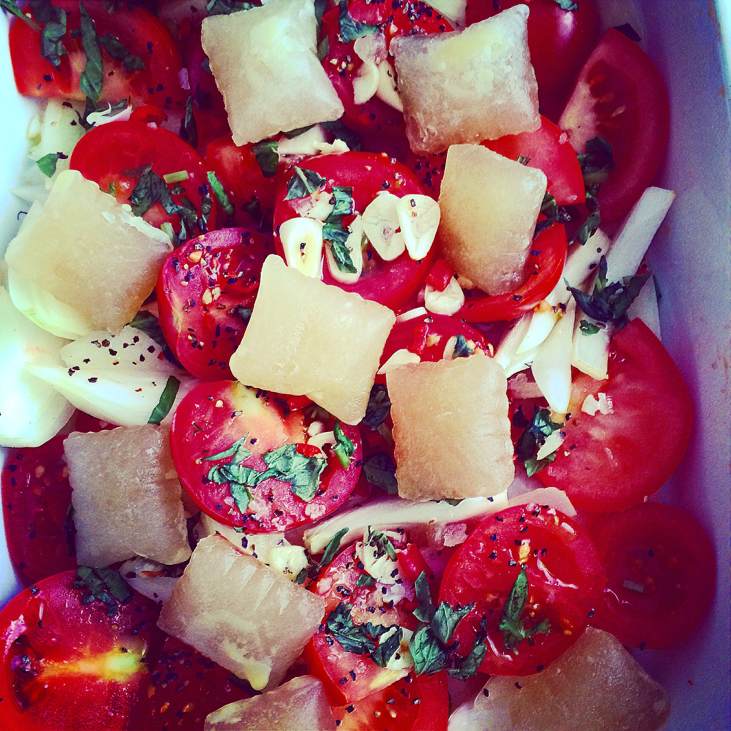 Kvaliteten på tomatene vil nok være avgjørende for smaken så velg noen skikkelig smakfulle tomater. Jeg brukte coctailtomatene Delicioso fra Ryfylket.