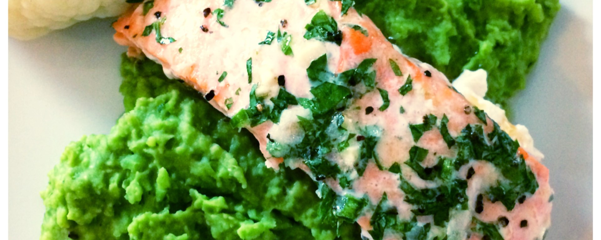 Her får du et raskt, enkelt, sunt og veldig godt middagstips. Laks med urtesmør er godt i seg selv, men det var faktisk den smakfulle ertemosen som var prikken over i’en ved dette måltidet. Ertemosen lages på 6 korte minutter og smaker friskt med persillesmør og et hint av chili og hvitløk. Jeg valgte å servere blomkål til, men du kan jo velge selv hva du vil ha av tilbehør som poteter, gulrot osv..