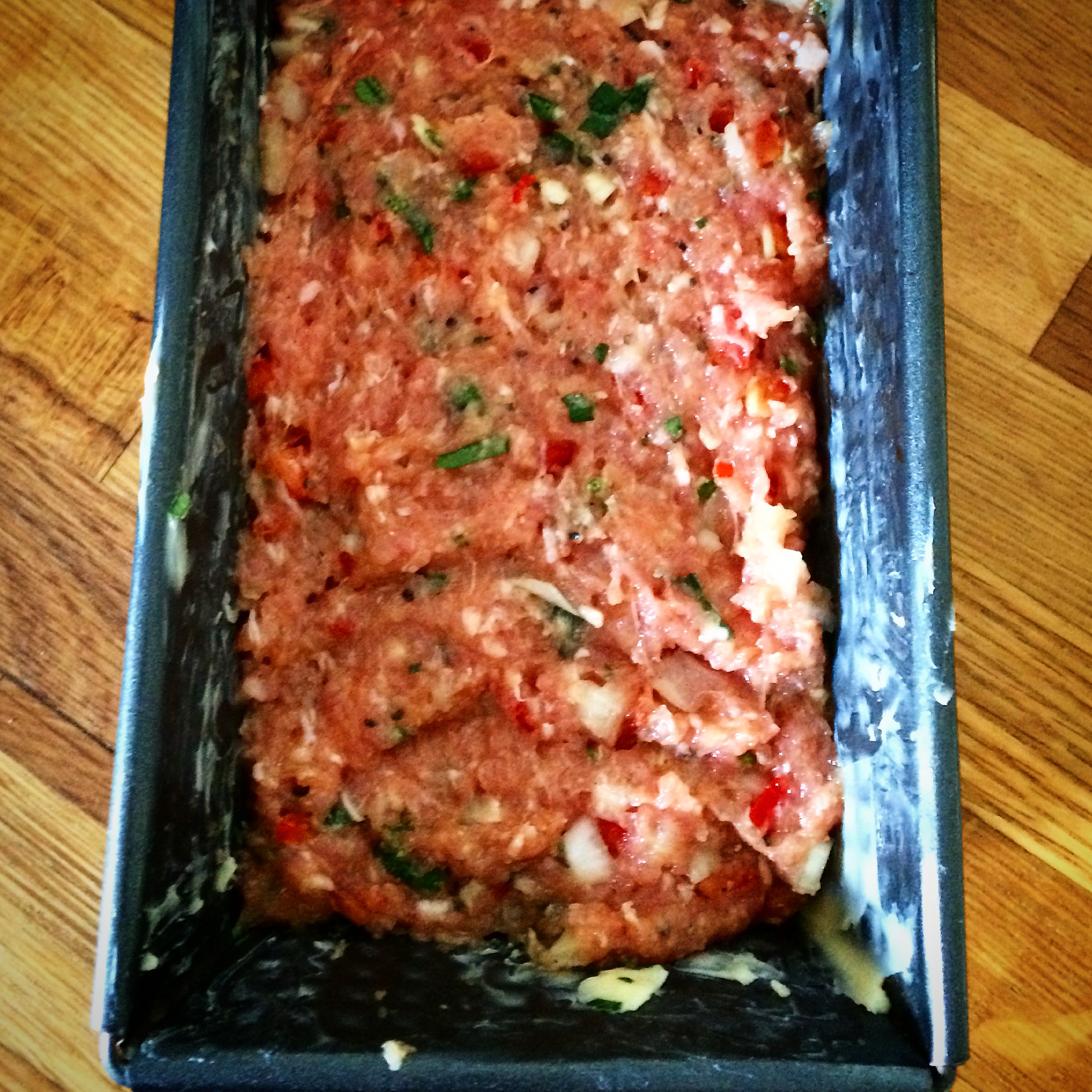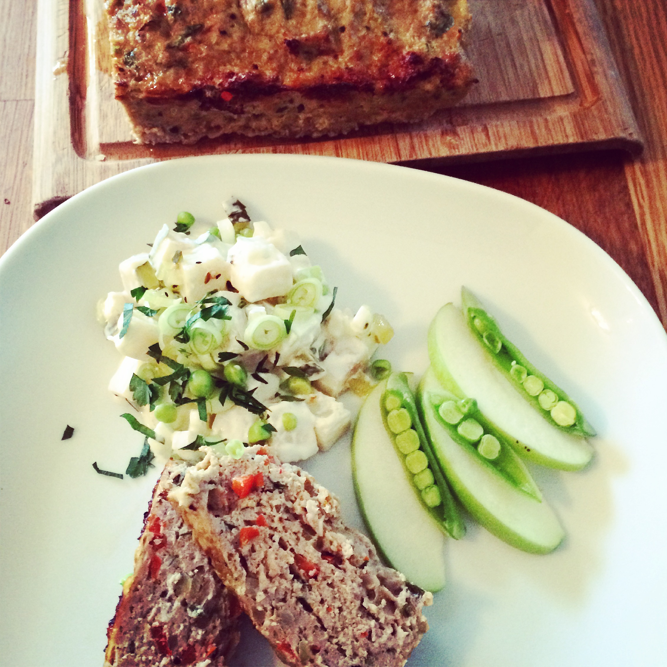 En annen og mer fancy utgave av kjøttpudding er med kyllingkjøttdeig, finhakket spinat, soltørket tomat og fetaost. Jeg lagde imidlertid en barnevennlig versjon denne gangen.