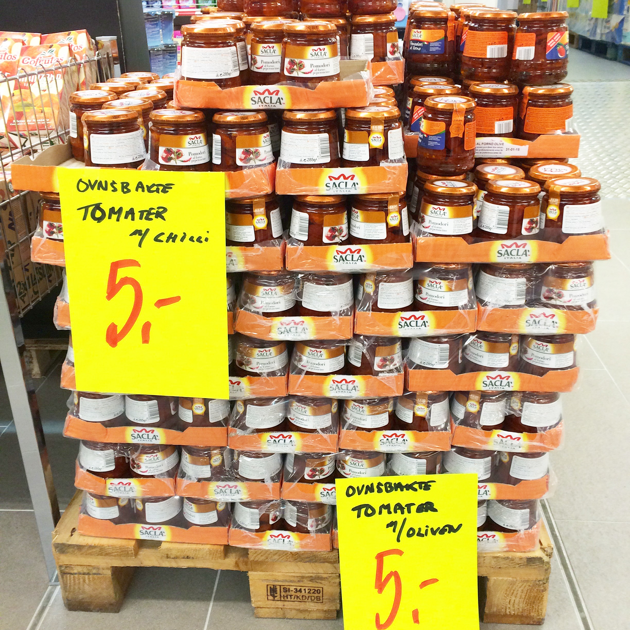 Jeg må innrømme at jeg faktisk ble sjokkert over at det var mulig å få et glass grillet pomodori tomat til 5 kroner som i tillegg smakte helt vanvittig godt!! Butikken er full av deilige SACLA produkter som pesto og bruschettina med mye smak og rene ingredienser.