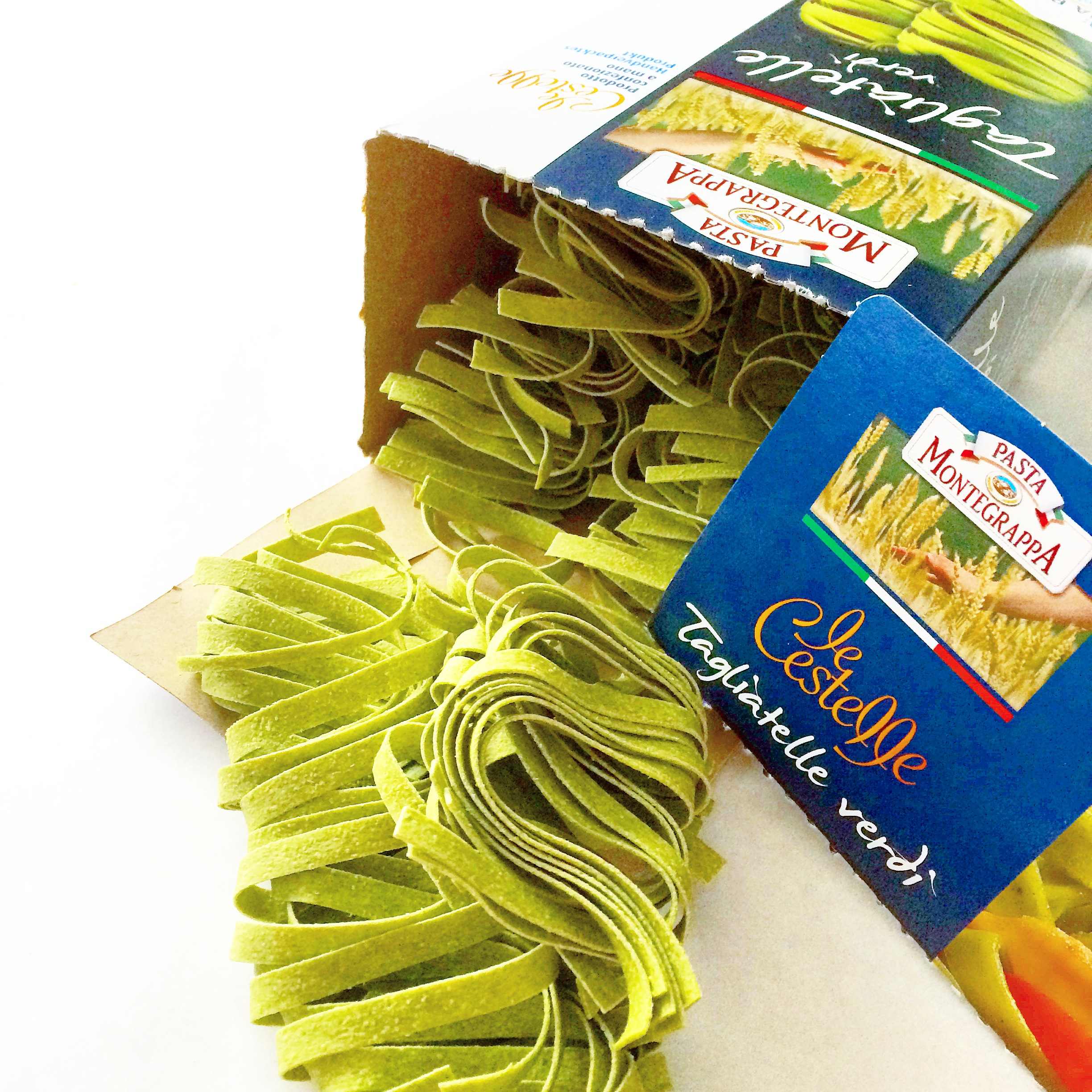 Pestoen, tagliatellen og serranoen får du kjøpt på Matland i Moss.