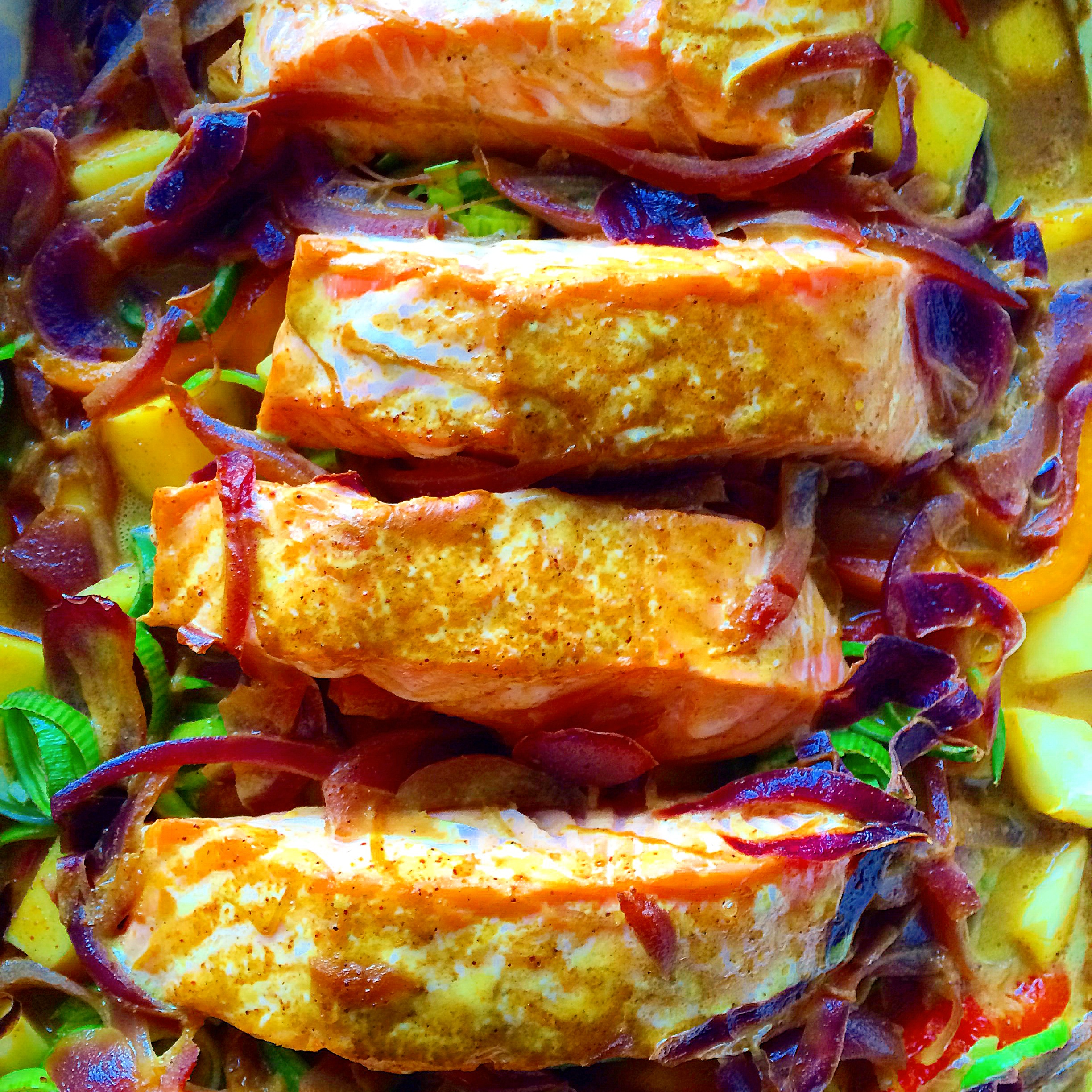Fisken er levert av Son Brygge, krydderne får du kjøpt på Matland og oppskriften er inspirert av «Saritas India – indisk mat for det norske kjøkken».
