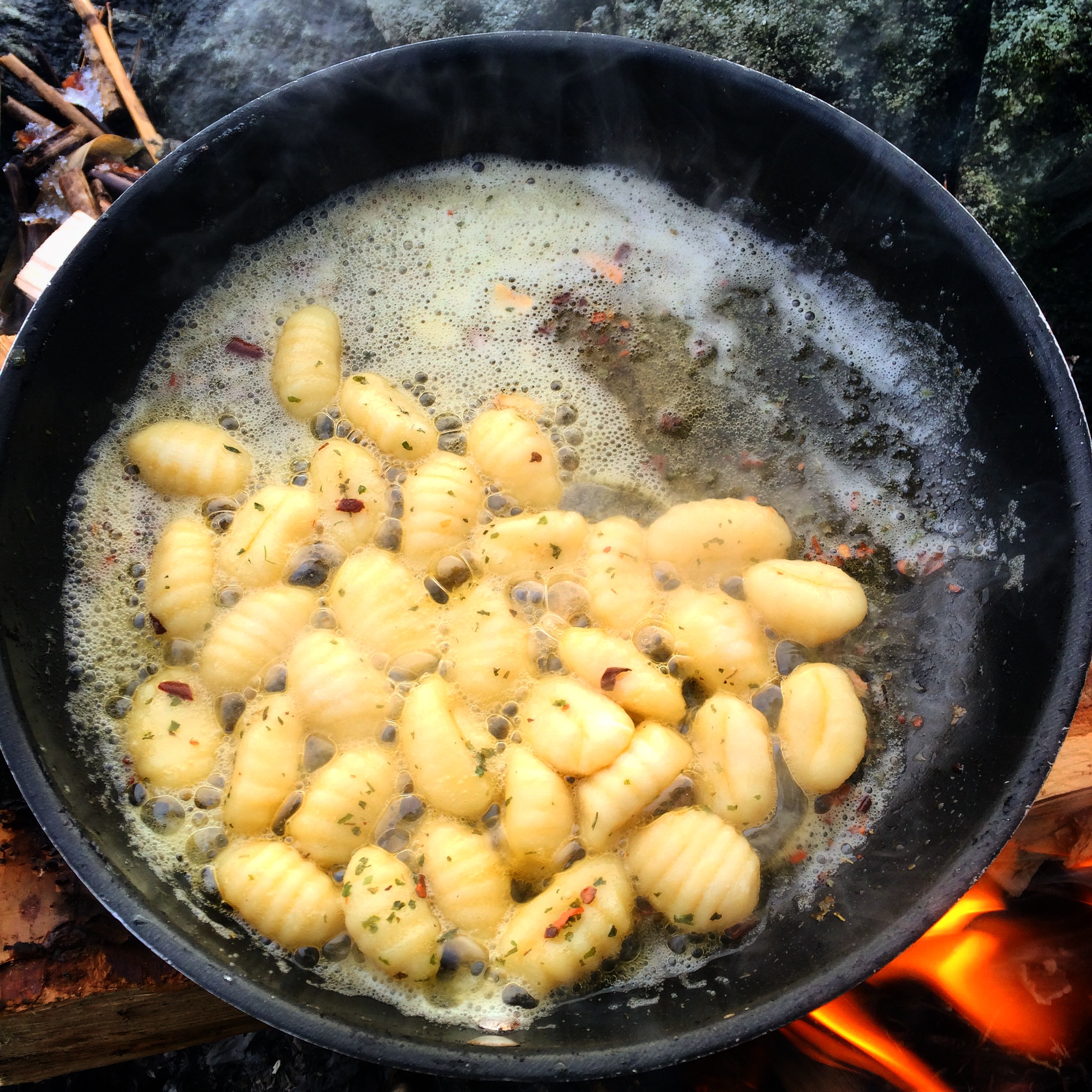 Gnocchi kan kokes i lettsaltet vann i 2-3 minutter, men jeg lover deg at de blir enda litt bedre om du tar de i stekepanne med smør og olje 😉