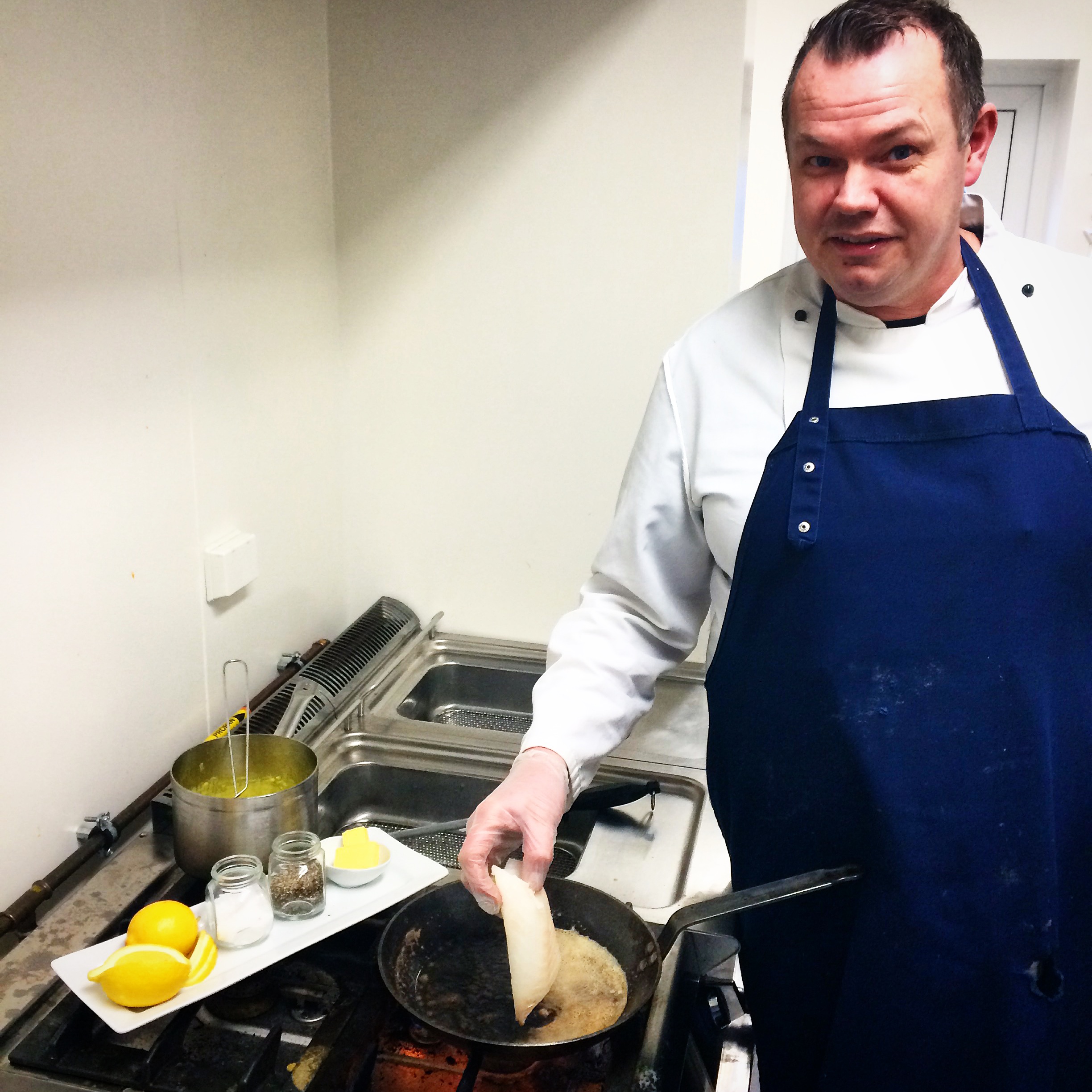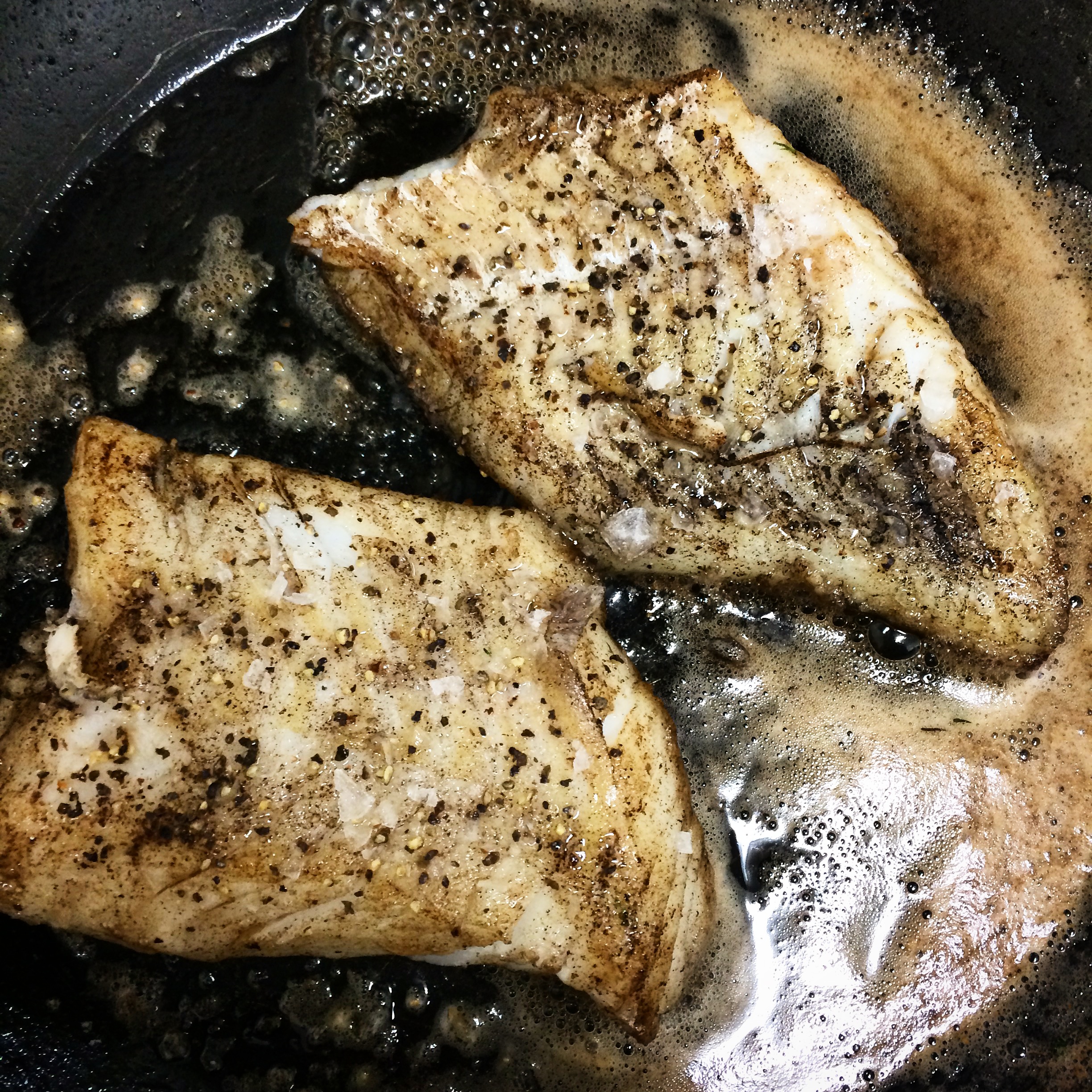 Stek skreien i passe varm panne med godt smeltet smør. Stek fisken ca 1.5 minutt på hver