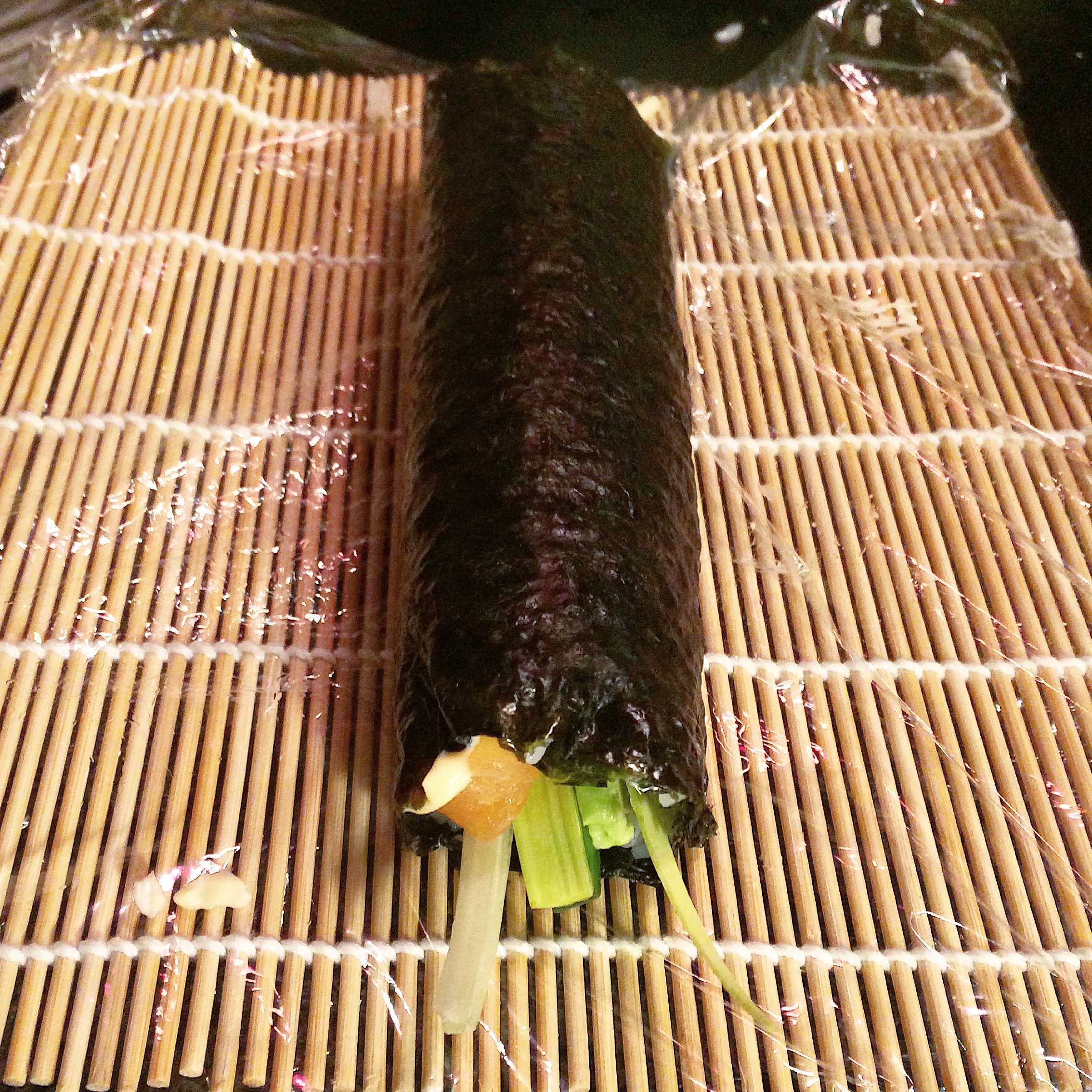 Skal du lage maki tilbereder du risen på samme måte. Det kan være lurt å kle matten med plastfolie slik at du bare kan tørke av eventuelt søl før du skal rulle en ny.