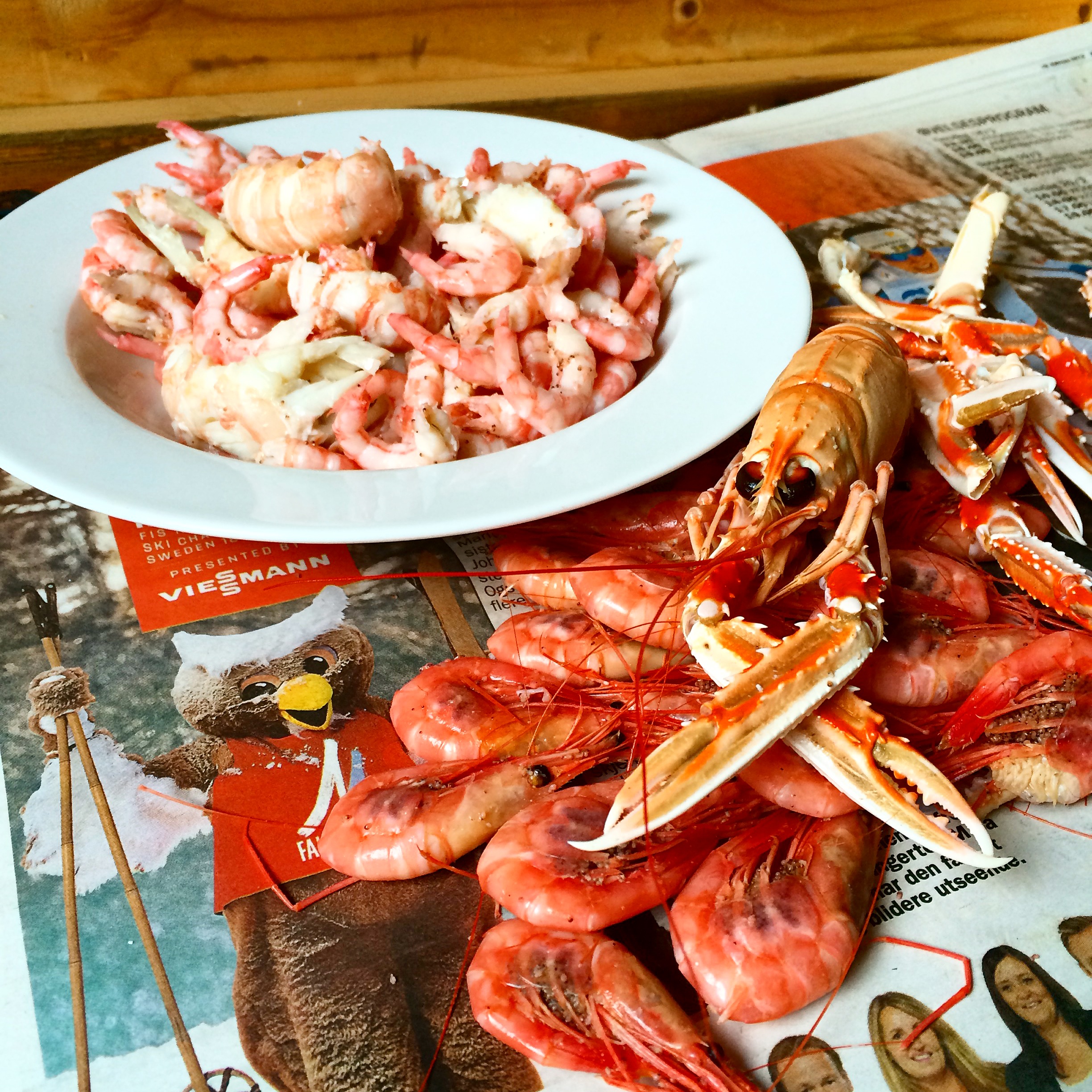 Skrell alle skalldyrene. du kan godt bruke krabbe og hummer også.