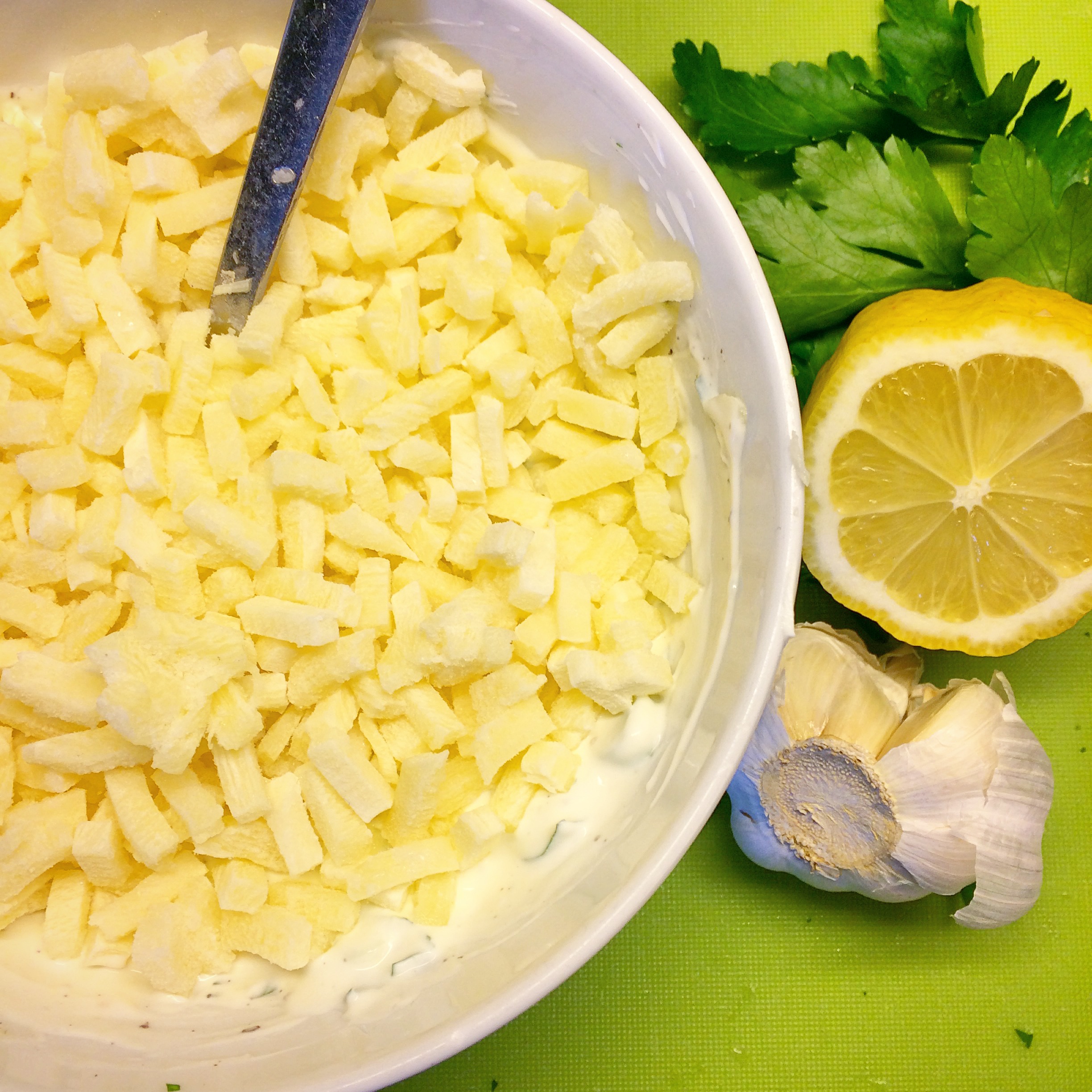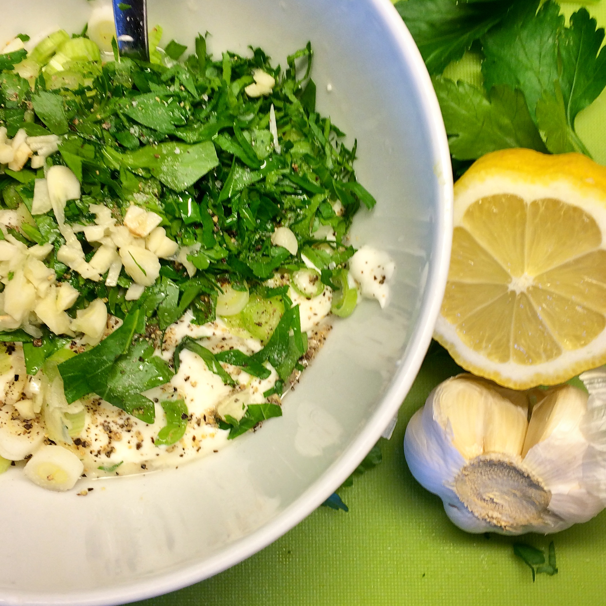 Rør sammen en hvitløksdressing som tilbehør på DENNE måten.