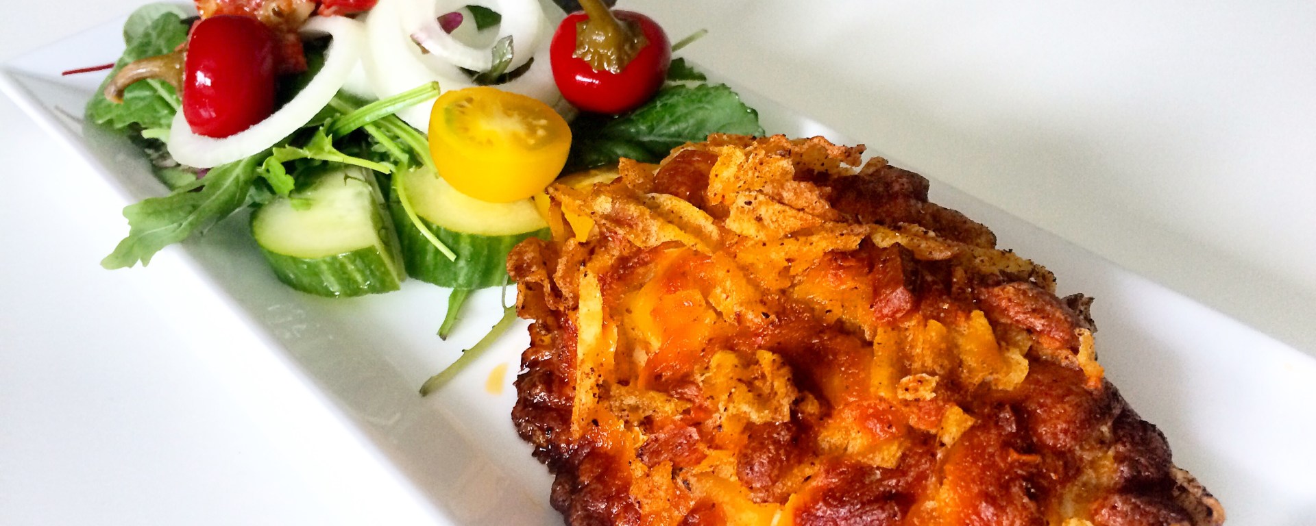 Jeg bare digger denne kyllingen. Det smaker så vanvittig godt med sprøstekt skorpe og saftig kylling. Knus grovriflet salt og pepper potetgull med revet mozzarella. Pensle kyllingfileten med smør og klem på den crispy blandingen. Stekes i 25 minutter i ovnen før du kan nyte dette kule og smakfulle måltidet.