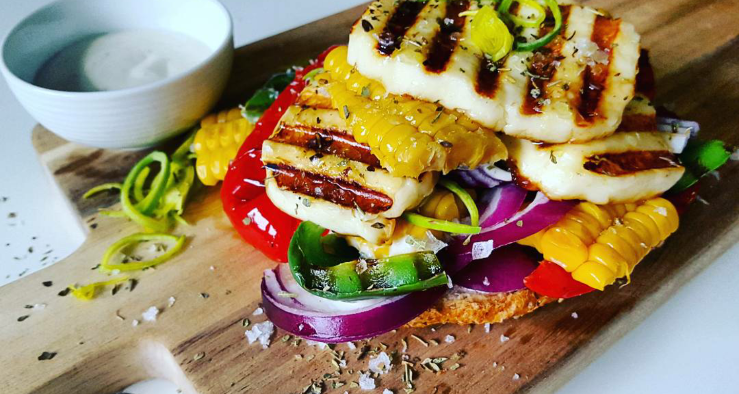 Halloumi er en fantastisk grillost. Den er god på smak og holder formen selv under steking. Sammen med frisk paprika, løk og mais blir dette en deilig og sunn sandwich.