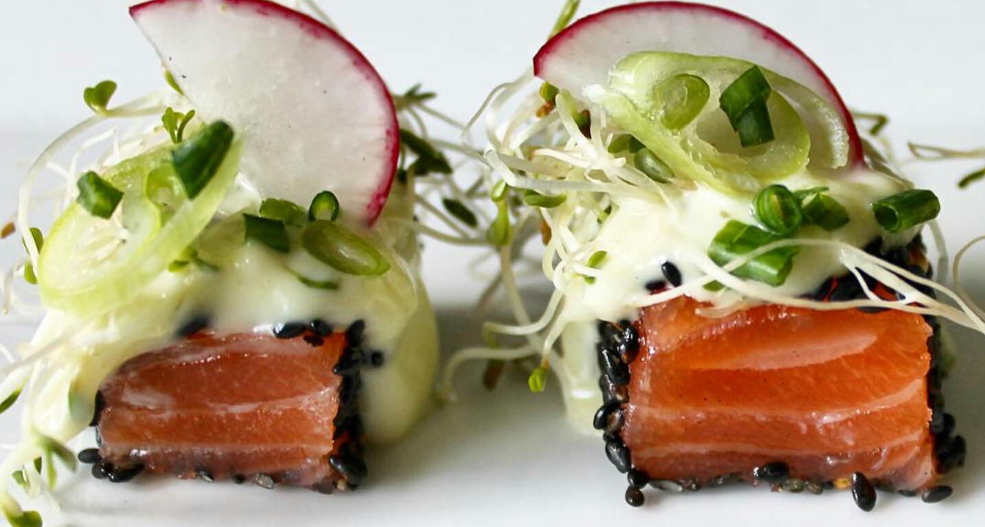 Disse salmabitene er perfekt å servere som en del av havets festbord eller som forrett. De kan også nytes alene som sushi fordi du fortjener det! Laksesmaken passer perfekt sammen med de svarte sesamfrøene som virkelig vekker smaksløkene. Topp med wasabimajones, litt alfaspirer, finhakket gressløk og reddik. Alle disse smakene passer vanvittig godt sammen! Wasabimajones rører du enkelt sammen ved å ta Hellmann’s majones og wasabipaste.
