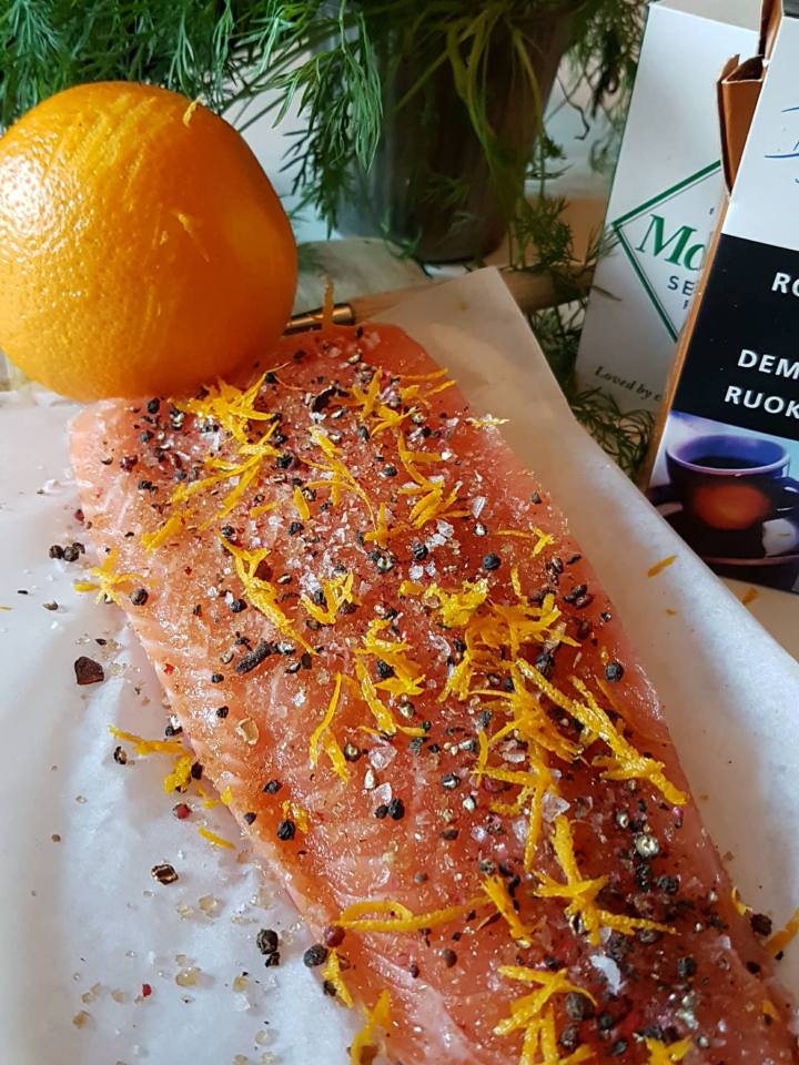 Legg fisken i en tett pose og legg i kjøleskapet ca 1 time. Laksen er ferdig når du ser at sukker og salt har «smeltet» på fisken.