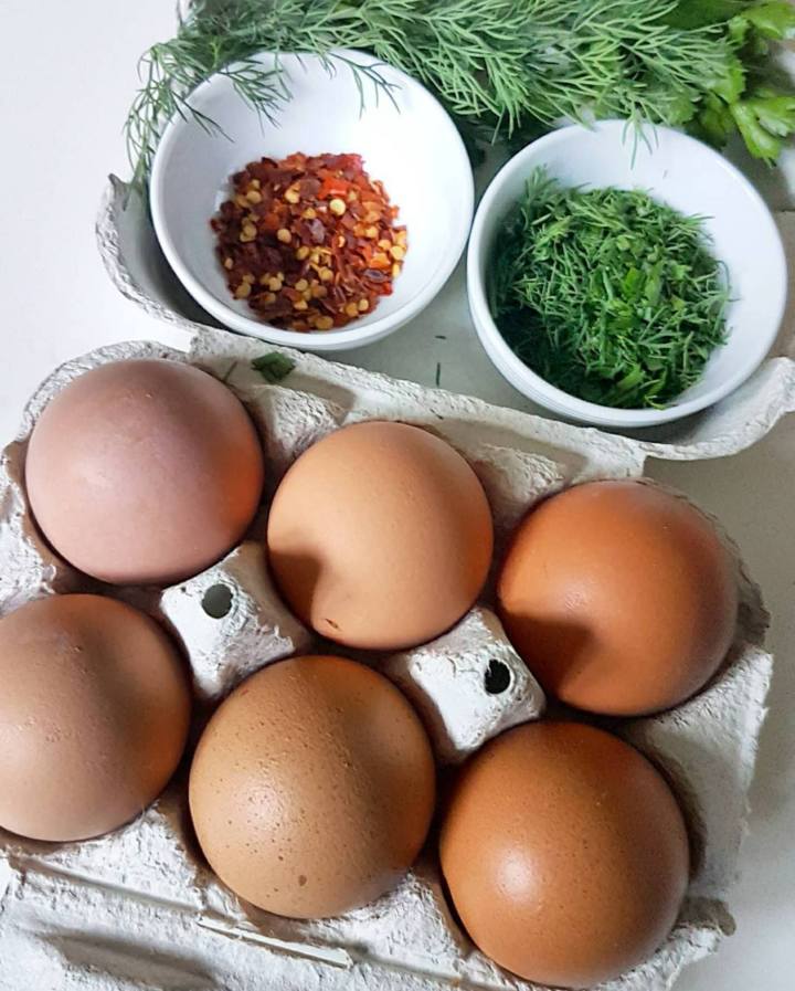 Server tyrkiske egg på en god kladd yoghurt med chilismør over. Strø over finhakket dill og persille til slutt. Nytes gjerne med ristet brød.