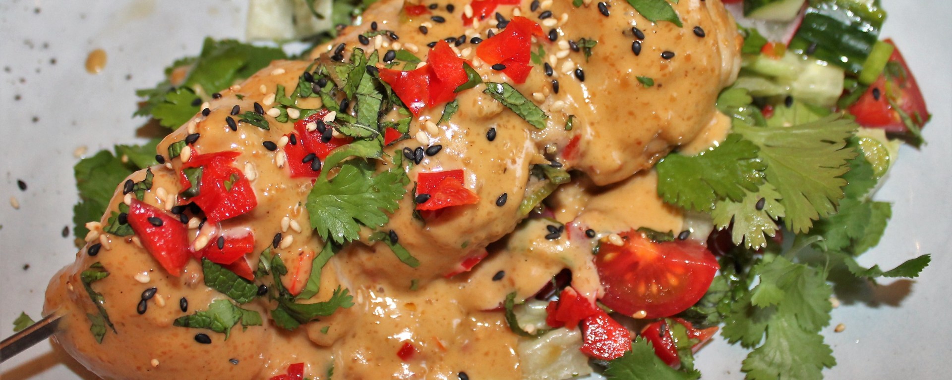 Slik lager du disse deilige kyllingspydene med peanøttsaus: