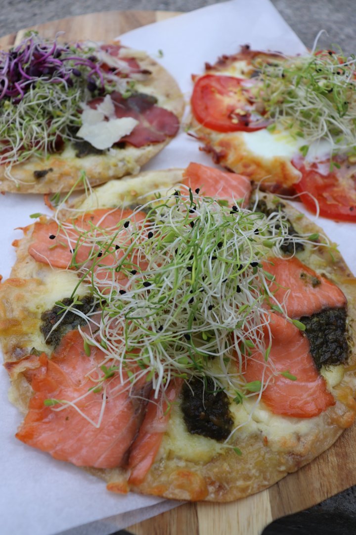 Hva er bedre enn raske og enkle middagsløsninger som også er smakfulle og sunne!? Langtidskokt Beef Bourgogne, men glem det nå for det blir for krevende i hverdagen. Disse porsjonspizzaene laget på sunne havrelomper eller speltlomper med creme fraiche, mozzarella og topping etter eget ønske lages på 11 minutter. 1 minutt å mekke og 10 minutter i ovnen. Min egen favoritt er med pesto og røkt laks eller spekeskinke og revet parmesan. Lompepizza funker like bra til lunch som til kvelds hvor du lage en sunnere versjon med egg og tomat Pynt med spirer og du kan trylle fram de lekreste porsjonspizzaer. Snikgjest har vært på besøk hos Spirehagen i Moss og hentet mange gode, lekre og gigasunne spirer til bruk i salat, smoothie og som topping.