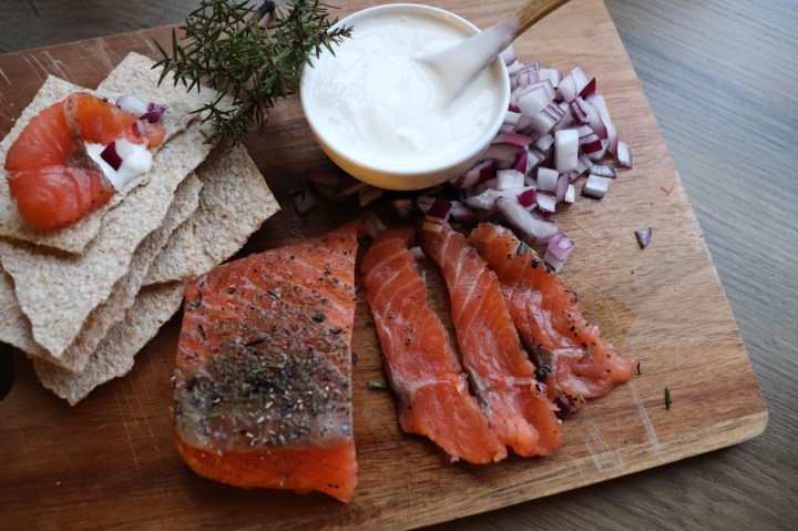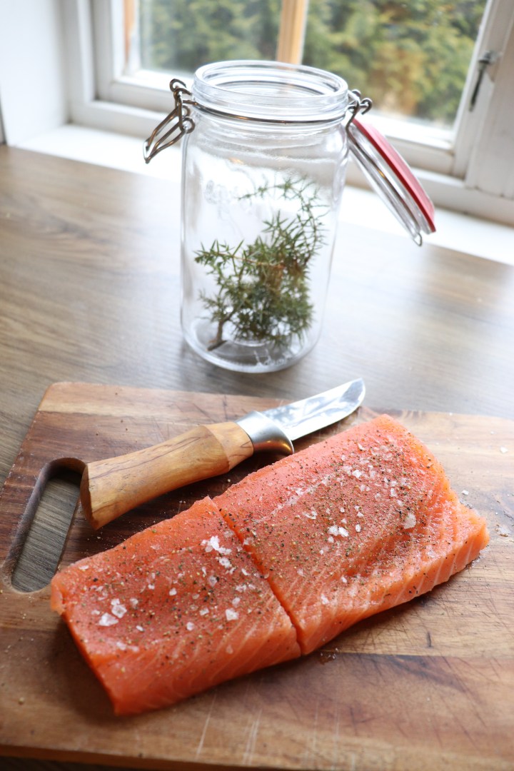 Sterkt inspirert av min nye kokkehelt, Niklas Ekstedt, måtte jeg teste ut denne enkle måten å røyke laks selv inne på kjøkkenbenken. «Analog matlaging», som han kaller det, handler om enkel matlaging over åpen flamme. Ved hjelp av en liten kvast tørr einebærbusk og et glass med lokk kan du røyke fisk selv. Dette må jo bare være utrolig stilig å gjøre foran middagsgjestene sine. Kaldrøking som det er snakk om her er også fort gjort. Hvor sterk røykesmak du ønsker avgjør du selv. Tenn på einebærbusken og slipp oppi glasset før du skrur på lokket. Flammen kveles relativt raskt da glasset rommer så lite oksygen, og det utvikles røyk. Røyken lagres i det tette glasset og setter smak på laksen. Vil du ha sterk røyksmak tenner du på einebærbusken flere ganger. Altså gjentar prosedyren. Når du har fått den røykesmaken du ønsker skjærer du salmaen i skiver og serverer med flatbrød og aioli til. Enkelt, smakfullt og temmelig stilig.