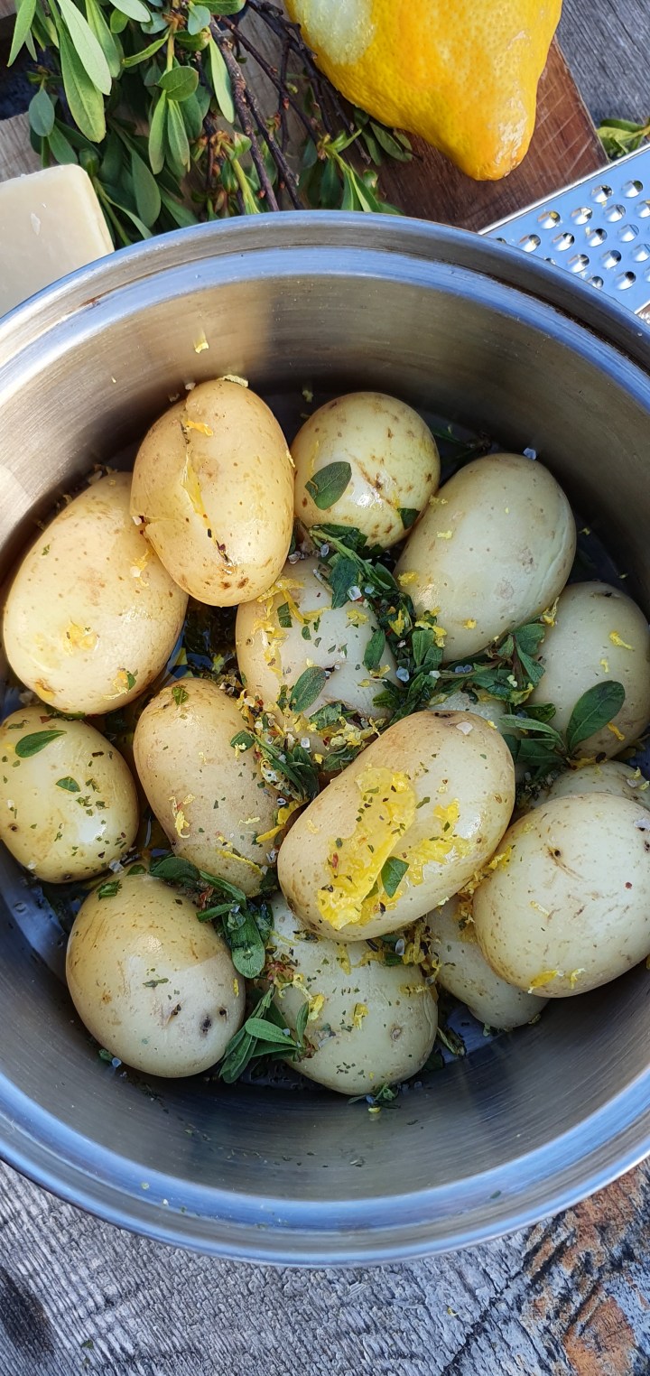 Visste du at du hvis du ferdes i Østfolds myrområder så mest sannsynlig labber rundt i urtehagen? Den grønne busken PORS vokser i myr og på andre våte steder og har i Nord-Europa vært en velkjent nytteplante som har vært brukt til både kulinariske og medisinske formål i århundrer. På varme sommerdager kan du lukte den aromatiske busken pors. Nå om dagen er den dessverre blitt litt glemt, og jeg skal være ærlig å innrømme at jeg ikke engang hadde hørt om den før min kjentmann fortalte meg om den. Så sagt og så gjort! Porsen måtte testes med det samme og den ble brukt til å smaksette kokte poteter og sellerirot bakt i bålpanna. Porsens aromatiske smak passer nok til det aller meste, men må brukes i små doser. Du kan nemlig få hodepine og ubehag ved overforbruk. Gravide skal ikke innta den da den kan være abortfremmende. Pors er altså ikke å spøke med, men veldig god i små mengder. Disse potetene ble servert på fisketur i Vestfjella sammen med elgfilet skutt på høyden bak hytta. Vi regelrett satt på rompa og plukket urten, som ble finhakket og drysset over potetene etter en runde hvitløksolje fra Degernes og ramsløksaltet til Fru Timian i Rakkestad. Som forøvrig begge kun er en svipptur unna. Ureist mat altså!