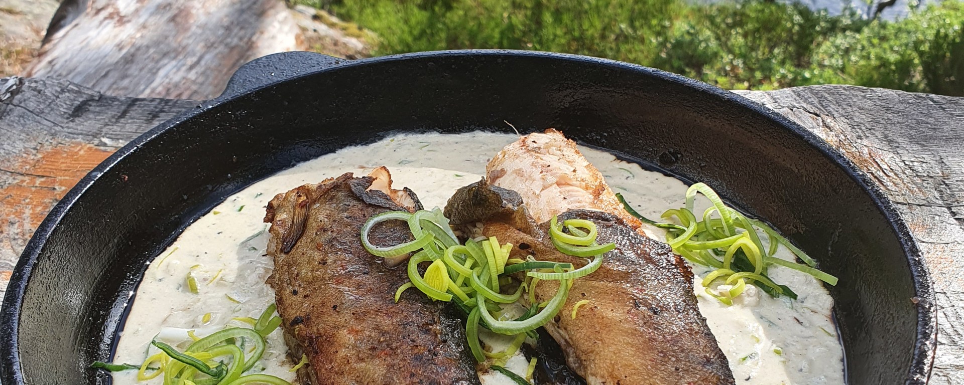 Lokalmatdronninga og Vannsjøsfiskens mor, Brith Bakken, elsker å lage enkel mat med gode råvarer. Brith er spesielt glad i å tilberede råvarer hun selv har fanget og skutt. Hun er en habil jeger som reiser til Canada på bjørnejakt hvert år. I Briths kokebok «Vilt og velsmakende» fant jeg oppskriften på ansjossaus som hun serverte med gjeddekaker og jeg tenkte at dette er den perfekte sausen til ørreten jeg fisker i Vestfjella. Enkel å lage og få ingredienser. En boks ansjosfilet kan fint ligge i ei lomme på fiskeveska og fløte bruker jeg uansett i kaffen. Ikke alle vare like gira på ansjossaus og rynket på nesen, men når jeg fikk minnet de på at ansjos er en av de viktigste smaksingrediensene i både bernaise saus og Cæsar dressing lovet de å prøve. Resultatet ble strålende og ansjossausen falt virkelig i smak. Finhakket løk og ansjos fikk koke i fløte med litt pepper og purre, og på 5 minutter var ansjossausen til dagens fangst av sprøstekt ørret klar. Dette er en fiskesaus jeg garantert skal bruke mye framover. Litt ansjos kommer også til å smaksette fiskesuppa som min hemmelige ingrediens.