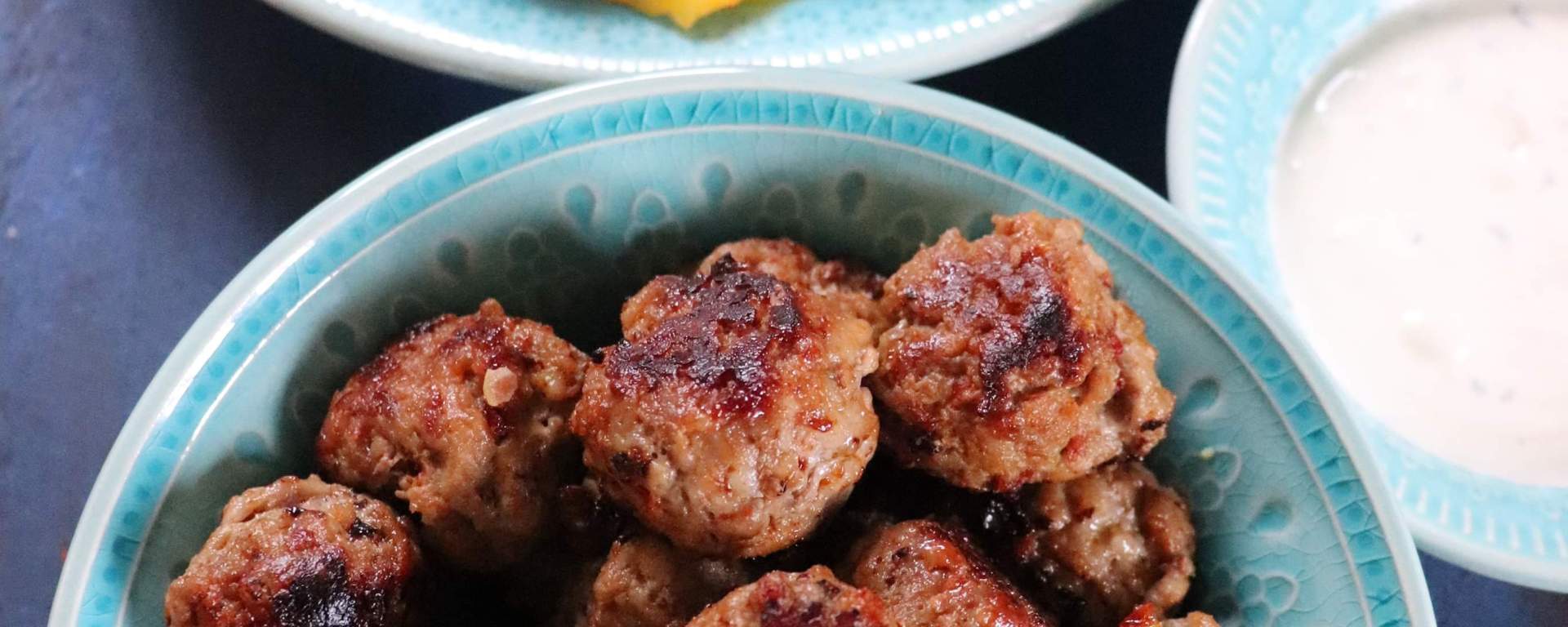 Disse superdigge tapasbollene har jeg laget og servert på Snikgjest inspirasjonskvelder hvor jeg kun bruker varer fra butikken. Snikgjestene digger dem! Mye smak, spicy, saftige og utrolig smakfulle tapasboller med kun 4 ingredienser. Kvernet deig av storfe og svin (familiedeig) blandes med Fru Timians krydder «spansk fest», rapsolje med hvitløk fra RO og «Rød chili» fra Sterk Saus. Form til små boller og stek raskt i panna.