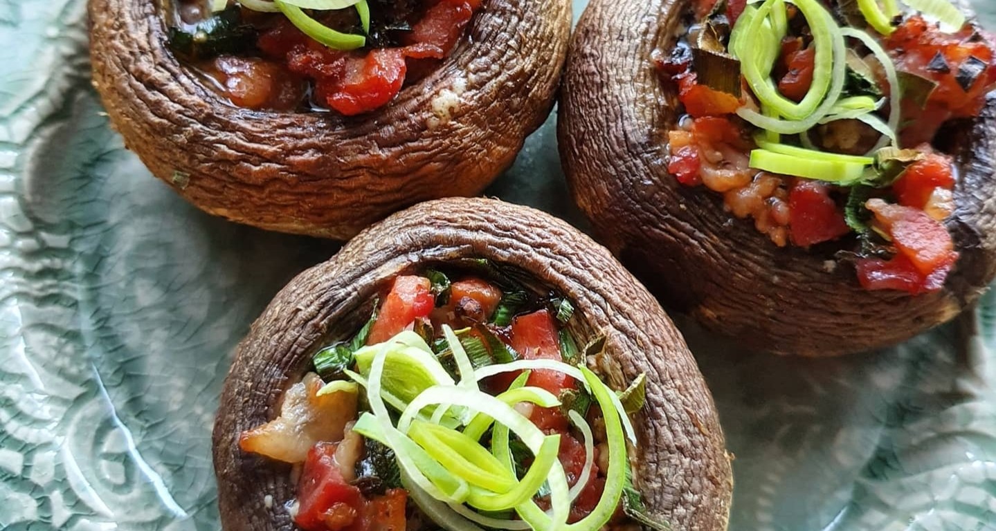 Kombinasjonen sopp, bacon og blåmuggost er en sikker vinner. Fyll store sjampinjong eller aromasopp med en bit blåmuggost og topp med stekte baconbiter. Har du fungi, soppsoya, for hånden drypper du noen dråper over før du steker de raskt i ovnen. Dette er en sunn og smakfull forrett som gjerne kan lages ferdig på forhånd og settes i ovnen når gjestene kommer. Ønsker du litt jålete tilbehør til biffmiddagen er disse små lekkerbiskene skikkelig tøffe som tilbehør. Stekt sopp er alltid en naturlig rett på vårt tapasbord og smaker like godt kalde dagen derpå.