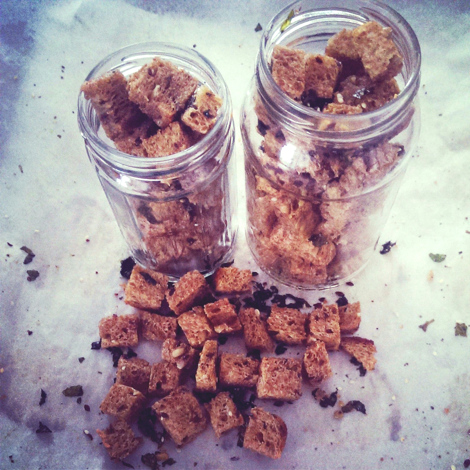 I stedet for å kaste et halvt, gammelt og tørt brød fant jeg ut at jeg skulle lage krutonger.