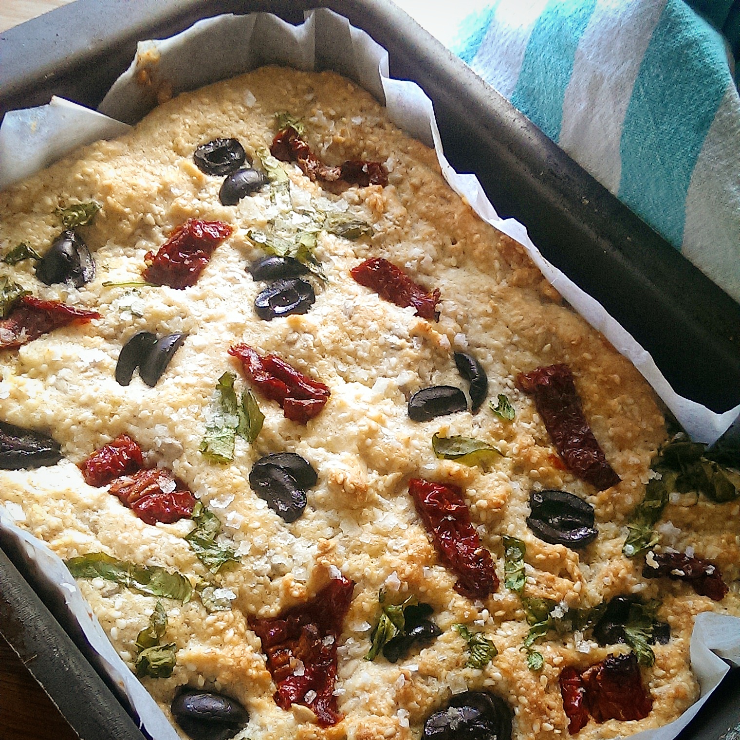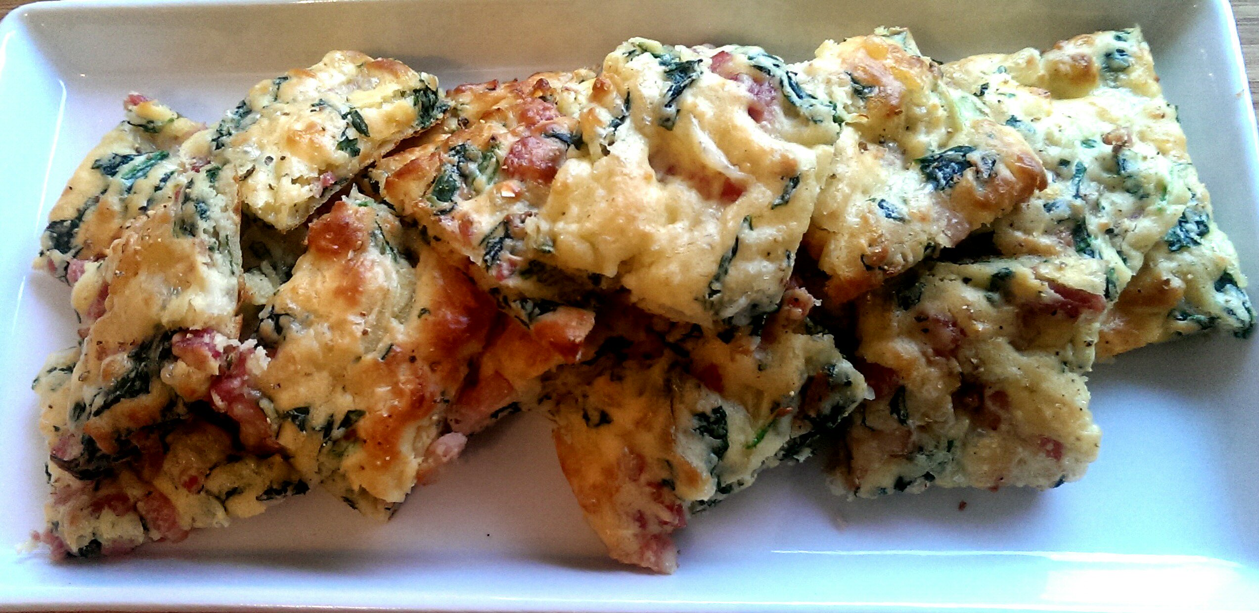 Litt usikker på hva jeg skal kalle dette da grunnoppskriften egentlig er en lavkarbo pizzabunn og de kunne likeså godt vært laget porsjonsvis i muffinsformer, men siden dette skulle gå raskt stekte jeg røren hel og skjærte den opp i biter/lapper.