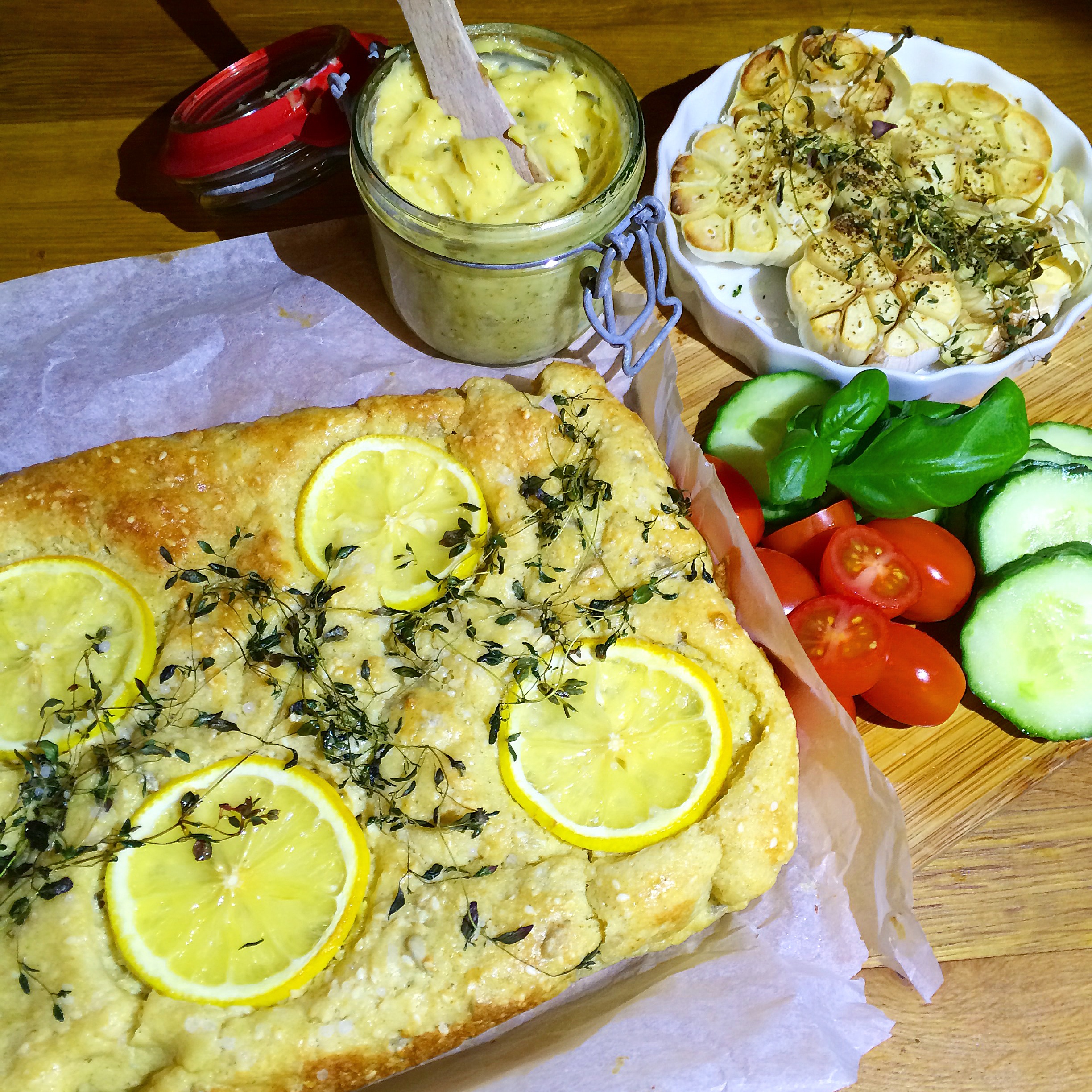 Disse hvitløksbrødene skulle egentlig være i tillegg til middagen, men de smakte bare så vanvittig godt at i steden for å dele de og ha de ved siden av endte vi opp med å spise et helt hver oss uten noe annet til. Eltefrie og luftige brød med masse ost, deilige urter og hvitløk. Jeg gjentar meg nesten selv til det kjedsommelige, men eltefrie oppskrifter har revolusjonert kjøkkenet mitt!! Jeg har ikke bakemaskin, jeg er ikke glad i å stå og elte for hånd og jeg får ikke gjærdeig til å heve som det skal. Kaldheving over natten gjør all den jobben for meg og jeg kan servere de deiligste brød i ulike varianter som kun fantasien begrenser. Det eneste du trenger å gjøre er å røre sammen en deig kvelden før. Hvis middagsplanene endrer seg lager du bare et foccacia brød som du legger i fryseren.
