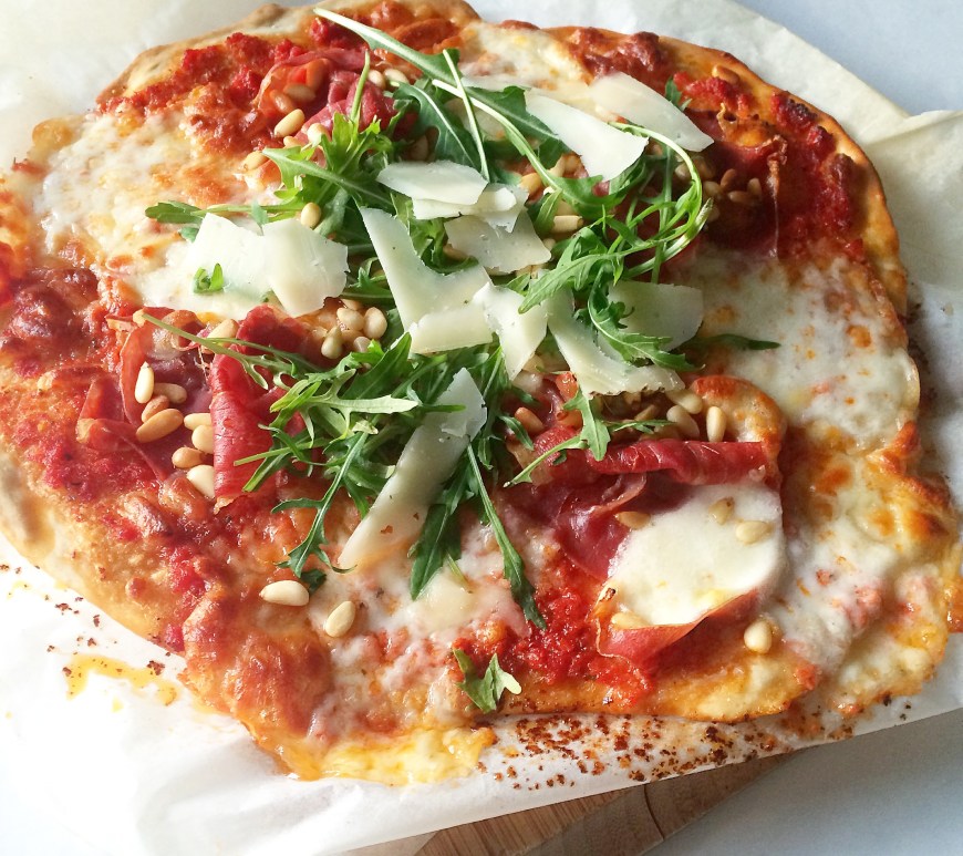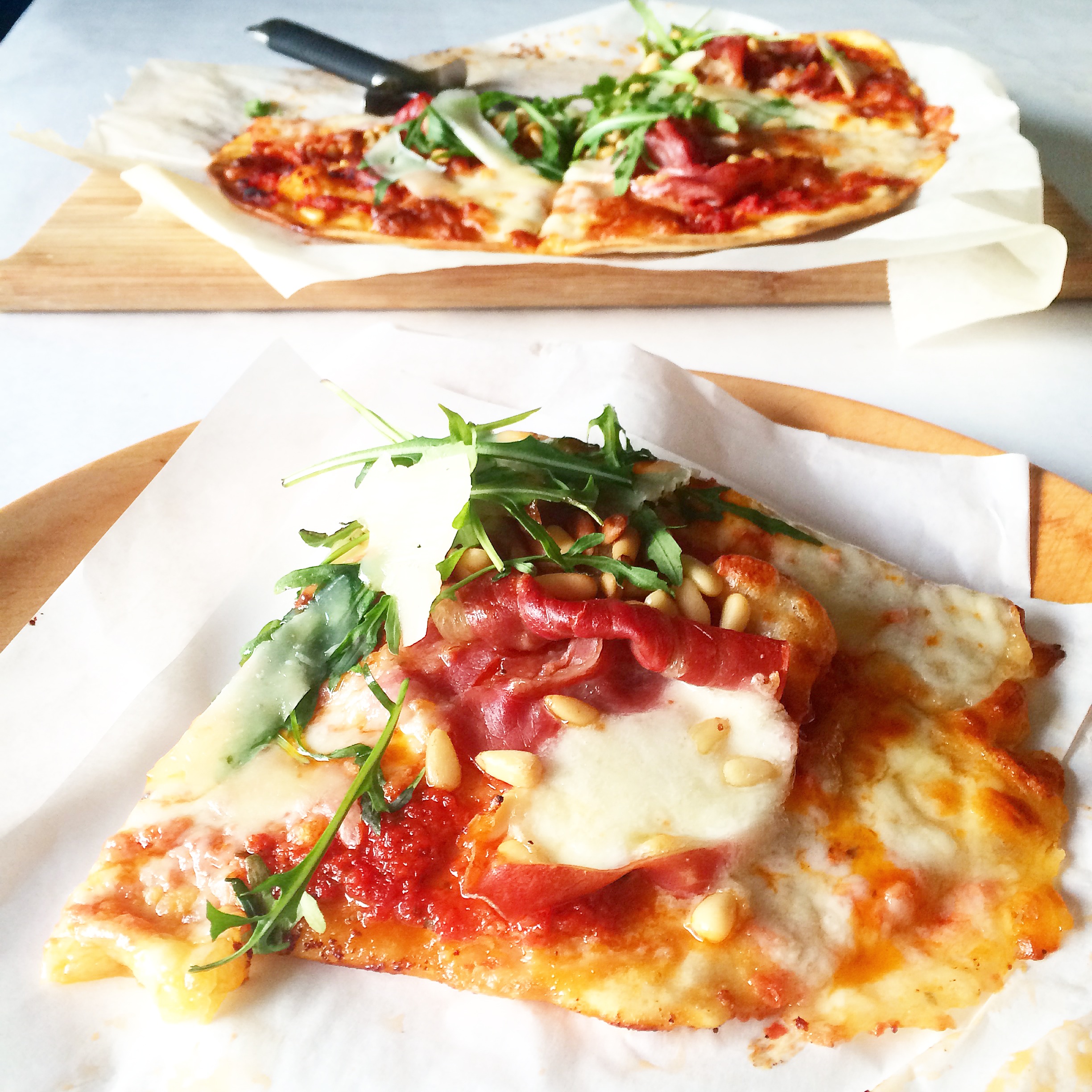 Selvfølgelig er det ingen ting som slår en ekte italiensk pizzabunn, men for oss som ser etter andre alternativ og glutenfrie varianter er dette et supert tips! Pizzabunnen er kun laget på kikertmel og vann og er ferdig på null komma svisj. Like deler vann og kikertmel i en shaker, shake i 10 sekunder, stek røren som ei pannekake, legg den på stekebrett, topp den med ost, skinke og garnityr du har tilgjengelig og inn i ovnen i 12 minutter.