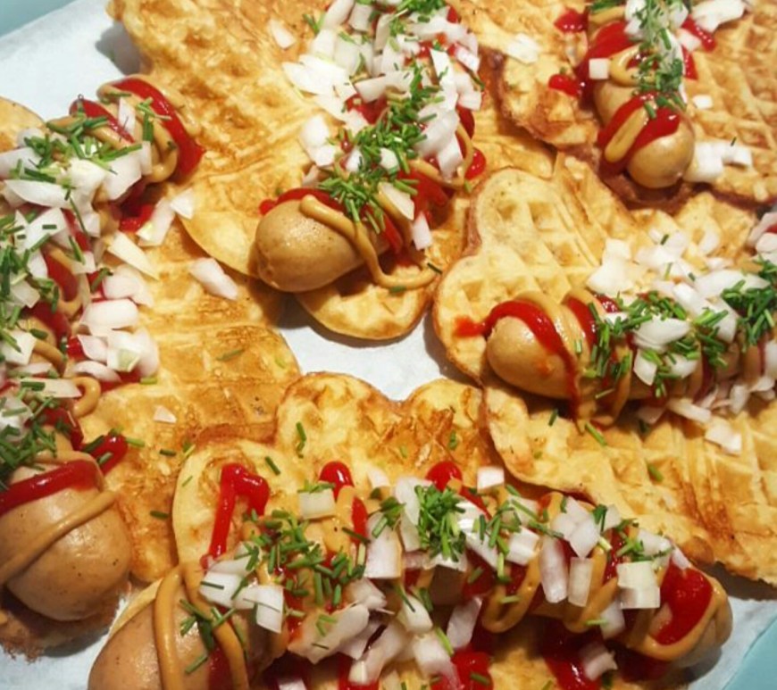 screenshot_20170201-180224Moss er en skikkelig pølseby! Vi har lange tradisjoner med å spise gode pølser fra flinke lokale slaktere og det var vi som oppfant «pølse i vaffel». Den kjente gourmetkokken Eyvind Hellstrøm har fått æren for å finne opp retten, selv om det egentlig var onkelen hans som stod bak oppfinnelsen i Moss på 1960-tallet. Du er ikke ekte mossing før du har kjøpt pølse i vaffel på Melløs Stadion (eller pølse i stappe på Go’bua). Det finnes ingen skam i å ha pølsemiddag hver uke hvis du spiser kvalitetspølser med høyt kjøttinnhold og rene ingredienser, som f.eks Pølseveven. Kjører du lavkarbovaffel i tillegg blir ikke sluttsummen så halvgæren likevel. Disse glutenfrie vaflene er laget på kremost egg. Lettvint og innmari godt!