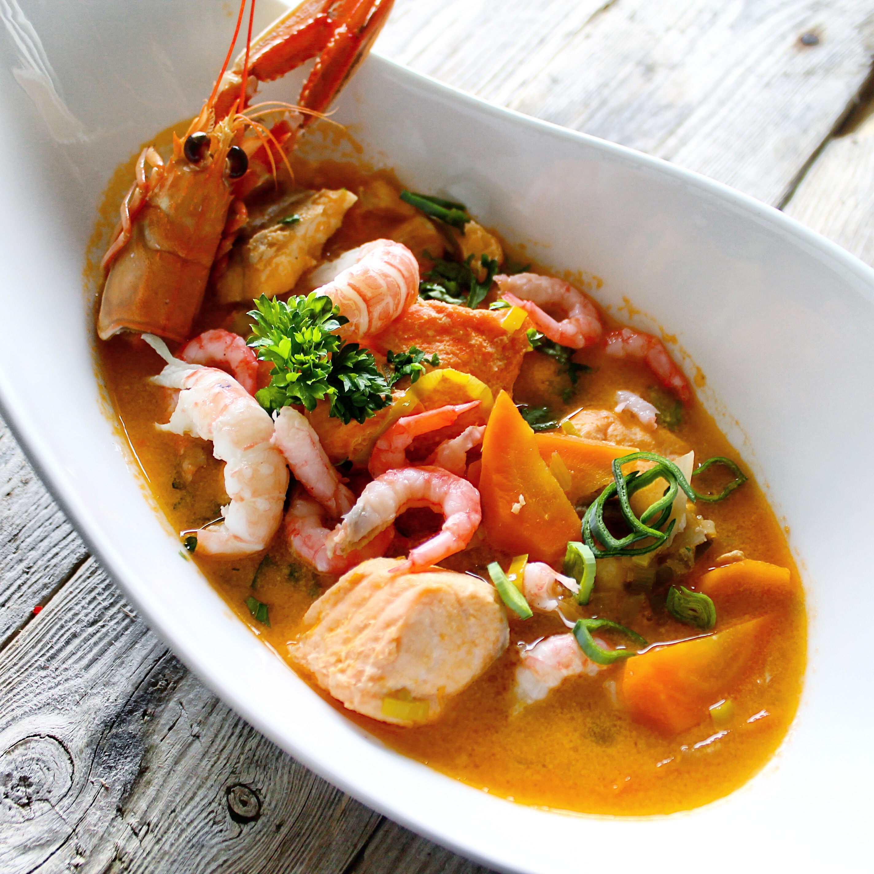 Denne fiskesuppa er bare utrolig smakfull med ulike typer fisk, reker og grønnsaker. Garantert en suppe som kommer til å falle i smak både hos liten og stor.