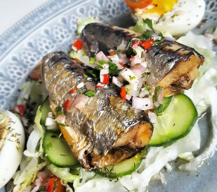Salat Nicoise er en salat laget av tomater, tunfisk, hardkokte egg, Niçoise-oliven og ansjos, med en vinaigrette. Jeg byttet ut ansjos med røkt peppermakrell og lagde en enkel dressing med Dijon sennep for å matche makrellen. Dette er en super middag å lage på dager du har dårlig tid. Den tar ikke lenger tid å tilberede enn tiden det tar å koke smilende egg. Altså 8 minutter! Sunt og veldig smakfullt. Proppet med alt du trenger av omega 3, proteiner, vitaminer og bla bla. Lag den fordi den er gørgod! Denne salaten lagde Snikgjest når hun hadde besøk av et knippe flotte Roede-damer på inspokurs i butikken. I denne retten har du 6 av de 10 sunneste råvarene du kan spise. Tomat, fet fisk, egg, spinat (salatmix), oliven og sitron, urter, hvitløk (krydder/urter). Hvis du tar deg i å være skjesen og småsulten på kvelden kan det være at kroppen ikke har fått i seg nok proteiner i løpet av dagen. Egg inneholder nesten ALT du trenger og er en flott proteinkilde, så unn deg 2 egg til denne salaten