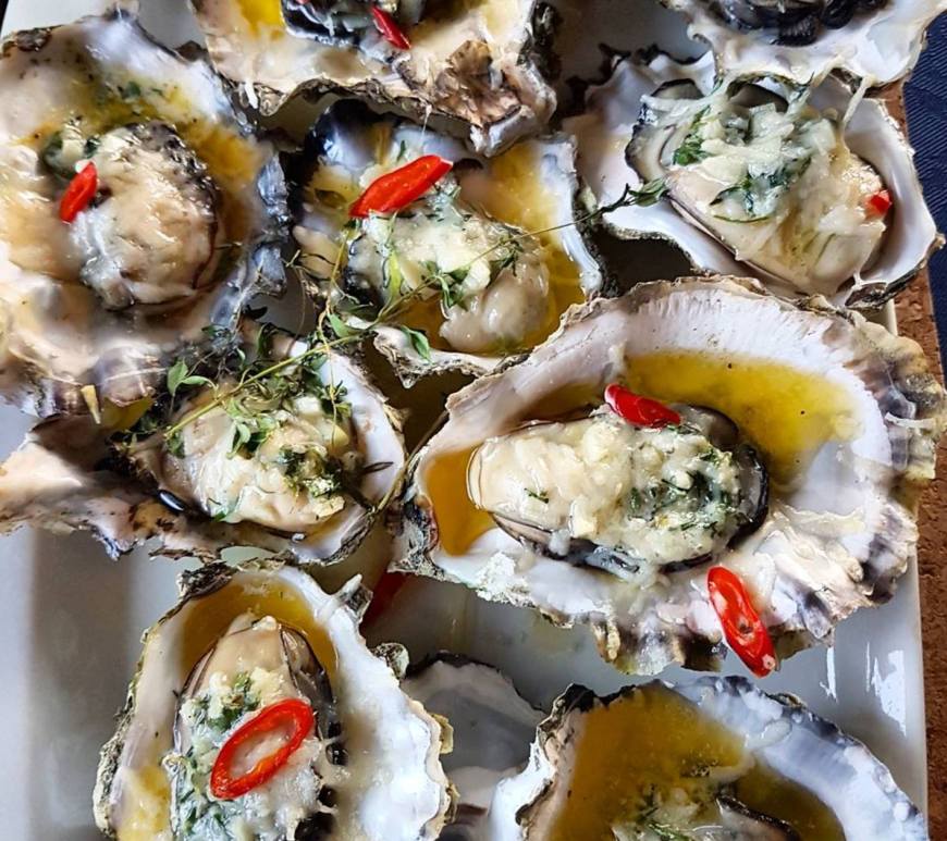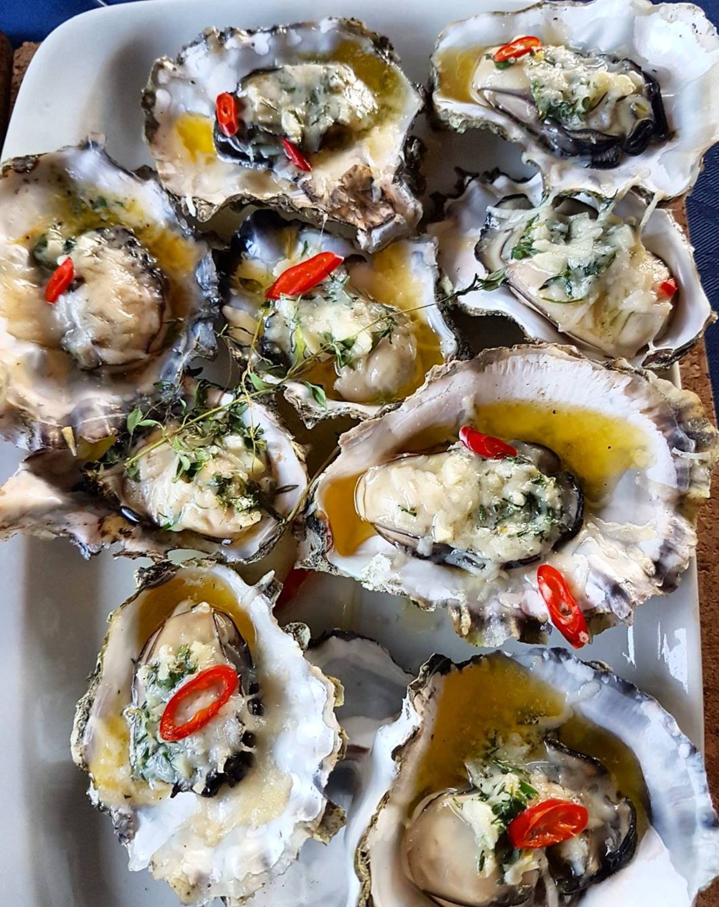 Gratiner de raskt i smør av ferske urter, chili og hvitløk og server med nydelig hvitløks bruschetta og aioli.