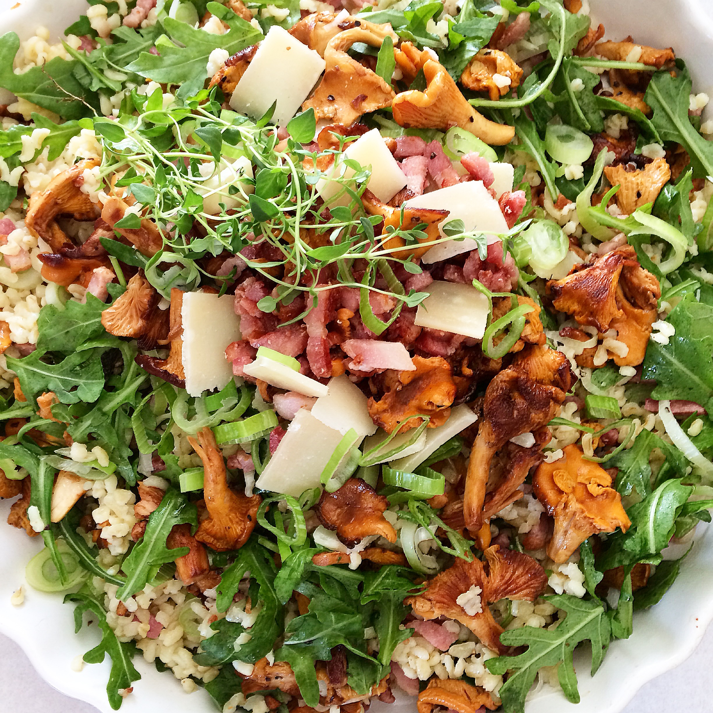 Jeg trodde det var mye stress å lage risotto siden man skal spe på kraft til koking av risen gradvis.. men det er det ikke! Det er både enkelt å få et godt resultat og overraskende smakfullt. Risotto lages i disse dager i utallige varianter hjemme hos oss. Denne høstrisottoen er laget på kortreiste grønnsaker fra Guttas Gårdsbutikk og litt røkt flesk. Du kan bruke hvitvin i kraften eller bare hønsebuljong. Du får masse smak fra det røkte flesket, løk, hvitløk, persillerot, purre og revet Västerbotten ost (Sveriges svar på parmesan). Tenåringen i huset liker ikke sopp, men det kan jo fint serveres litt stekt sopp ved siden. Ønsker du en kjøttfri variant dropper du flesket og bytter ut hønsebuljongen med grønnsakbuljong.