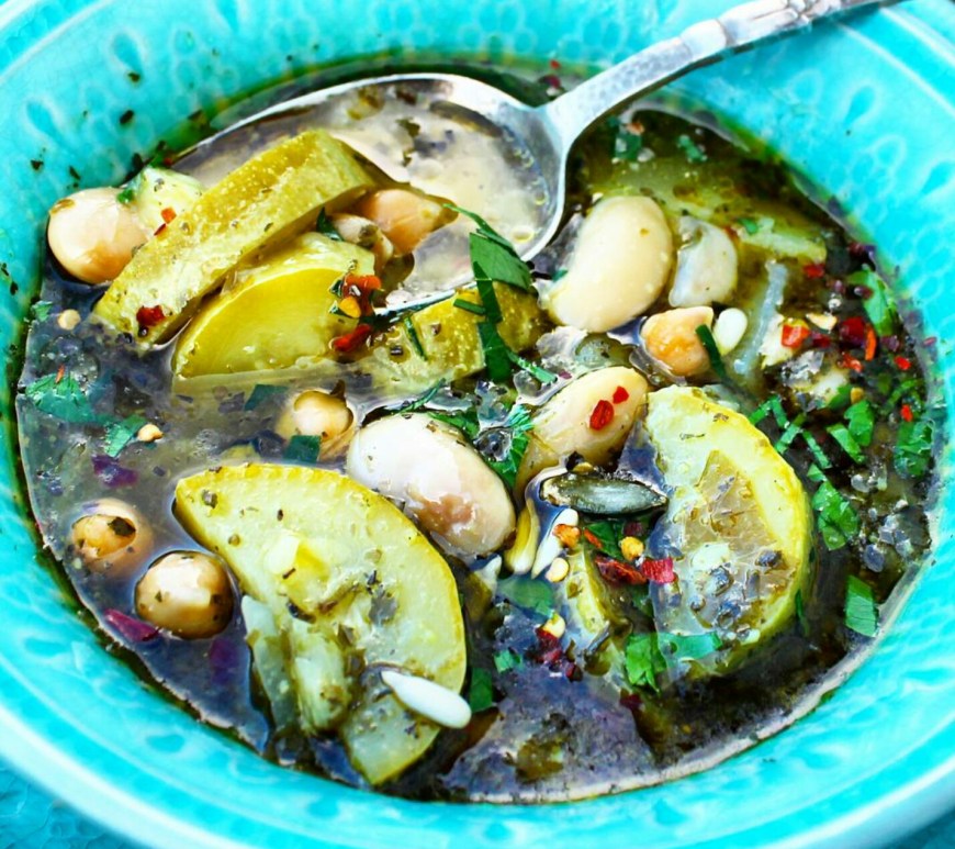 Helt seriøst, så visste ikke jeg at det var så mye smak i zucchini.. eller squash som vi sier på norsk. Jeg har rett og slett fått helt dilla på zucchini! Denne grønnsaken er rik på kostfiber, fin kilde til B-vitamiet folat, vitamin C og fattig på kcalorier. Bare å spise i vei med andre ord. Suppen er laget med en god olivenolje, hvitløk, løk, potetkrydder, persille og kraft. I tillegg har jeg hatt oppi store hvite bønner og kikerter slik at den metter lenge.