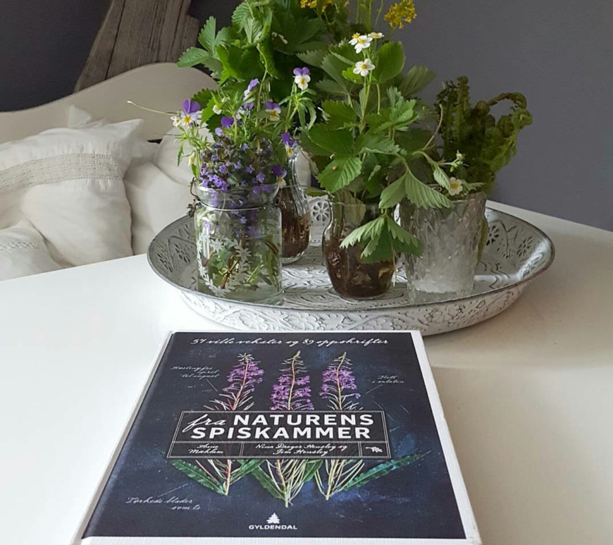 Screenshot_20160519-090953En friluftsfantast og matidiot som meg selv går i ekstase når livets lidenskaper forenes i samme åndedrag. Jeg føler så uendelig stor glede av å sanke spiselige vekster på tur for så å tilberede og spise de etterpå. MEN hva kan man egentlig spise? Det var mildt sagt lykke da jeg oppdaget boken «fra Naturens spisskammer» av Mæhlum, Dreyer Hensley og Hensley. Fakta, tips og inspirasjon pent innbundet med vakre bilder. Noen spiselige vekster hadde jeg allerede hørt om og prøvd ut, som gjøkesyre og brennesle, og noen var jeg ikke klar over at er spiselige. Da jeg oppdaget denne nydelige boken med 54 ville vekster og uttallige flotte oppskrifter måtte jeg bare rett ut på tur og lete etter skjulte skatter. 1 time senere var jeg hjemme igjen med flere ulike vekster. Så ble det løvetann-te, syltet granskudd og pynting av 17.mai rullekake med spiselige blomster.