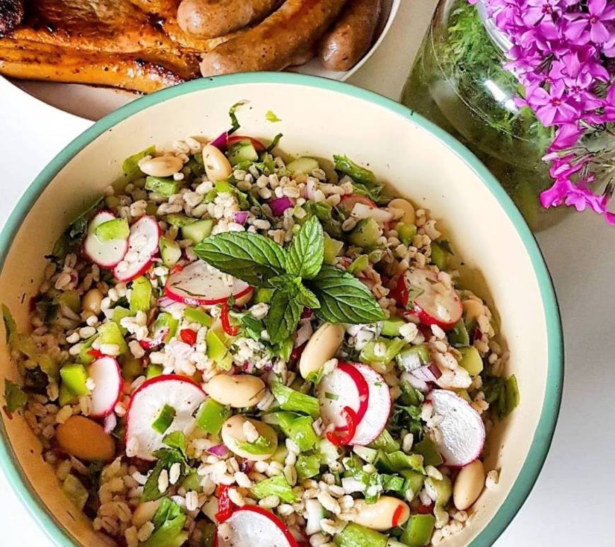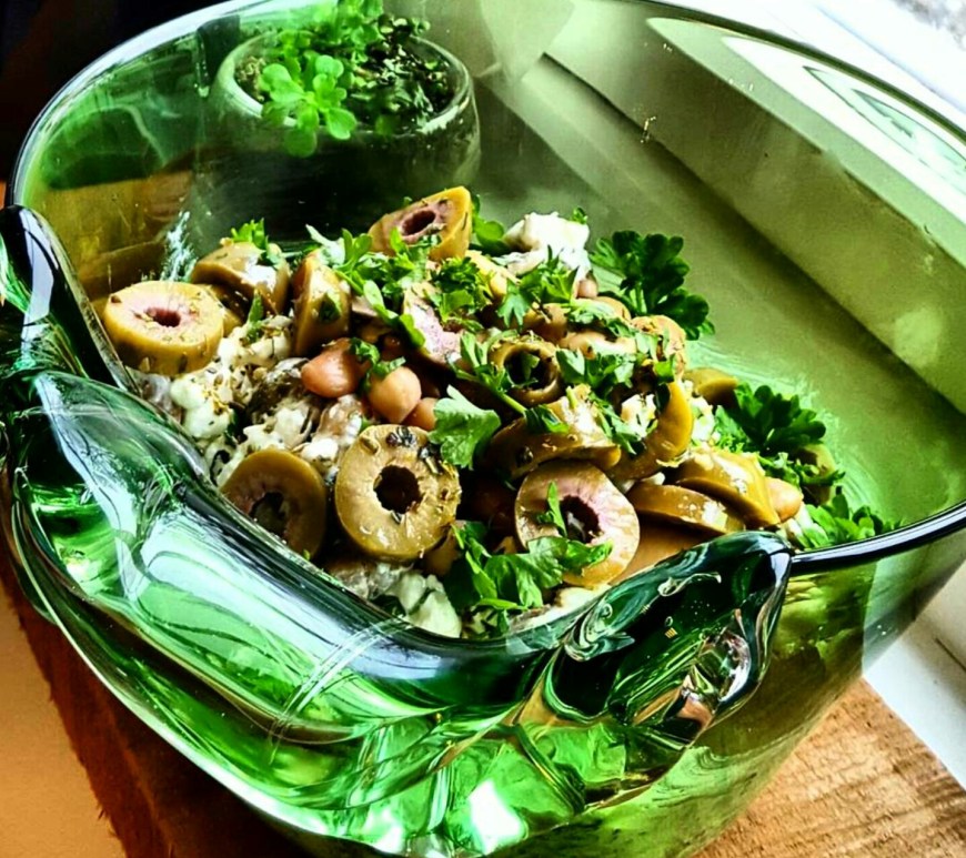 Screenshot_20160520-133617Denne sunne og smakfulle cottage cheese salaten er strålende tilbehør til grillmat eller alene som et proteinrikt måltid. Du rører raskt sammen cottage cheese, mixed bønner og oliven samt smaksetter med olivenolje, finhakket persille og litt urtekrydder. Jeg mekket til lunch på Røed Gård og den falt skikkelig i smak hos jentene på jobben. Den ble servert alene med litt brød til.