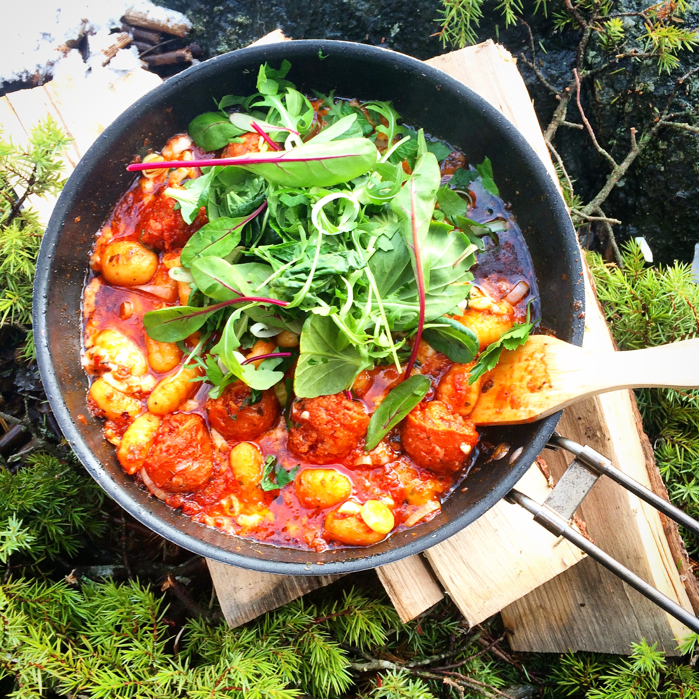 Dette måltidet ble bare sykt godt. Laget i en fei og spist opp i en fei! Gnocchi er potetpasta med kun 1/3 av karbohydratene og med kanskje dobbelt så god smak. Jeg mener det virkelig! Gnocchi kan du enkelt lage fra bunnen eller kjøpe ferdig og tilberede på 3 minutter. Du kan bruke det isteden for potet, ris, pasta eller i supper og gryter.
