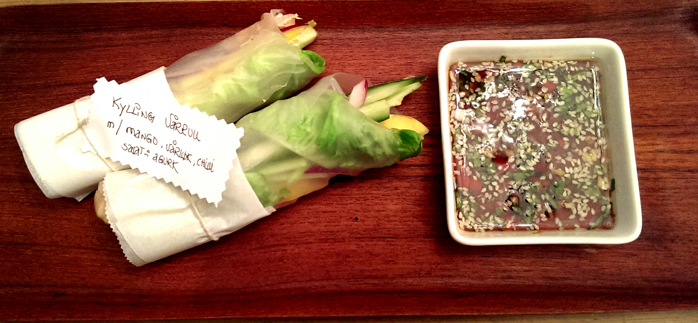 Vårrullene er fylt med stekt kyllingfilet, mango, rødløk, purre, agurk, salat og chilimajones. Fortsett å lese «Vårrull med spicy soyasaus»