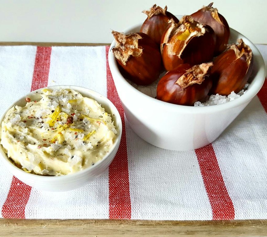 Ristede kastanjer er skikkelig god julesnacks. Saltbakte og varme kastanjer har en nydelig søt nøttesmak som passer perfekt med et friskt blåskimmelsmør. Kastanjer er tilnærmet fettfrie og inneholder mye kostfiber. Alt du trenger å gjøre er å skjære et snitt i toppen og bake de i ovnen i en ildfast form med havsalt i 25 minutter. Rør enkelt sammen smør og blåskimmelost, og smak til med sitronskall, sitronsaft og grovkvernet pepper.